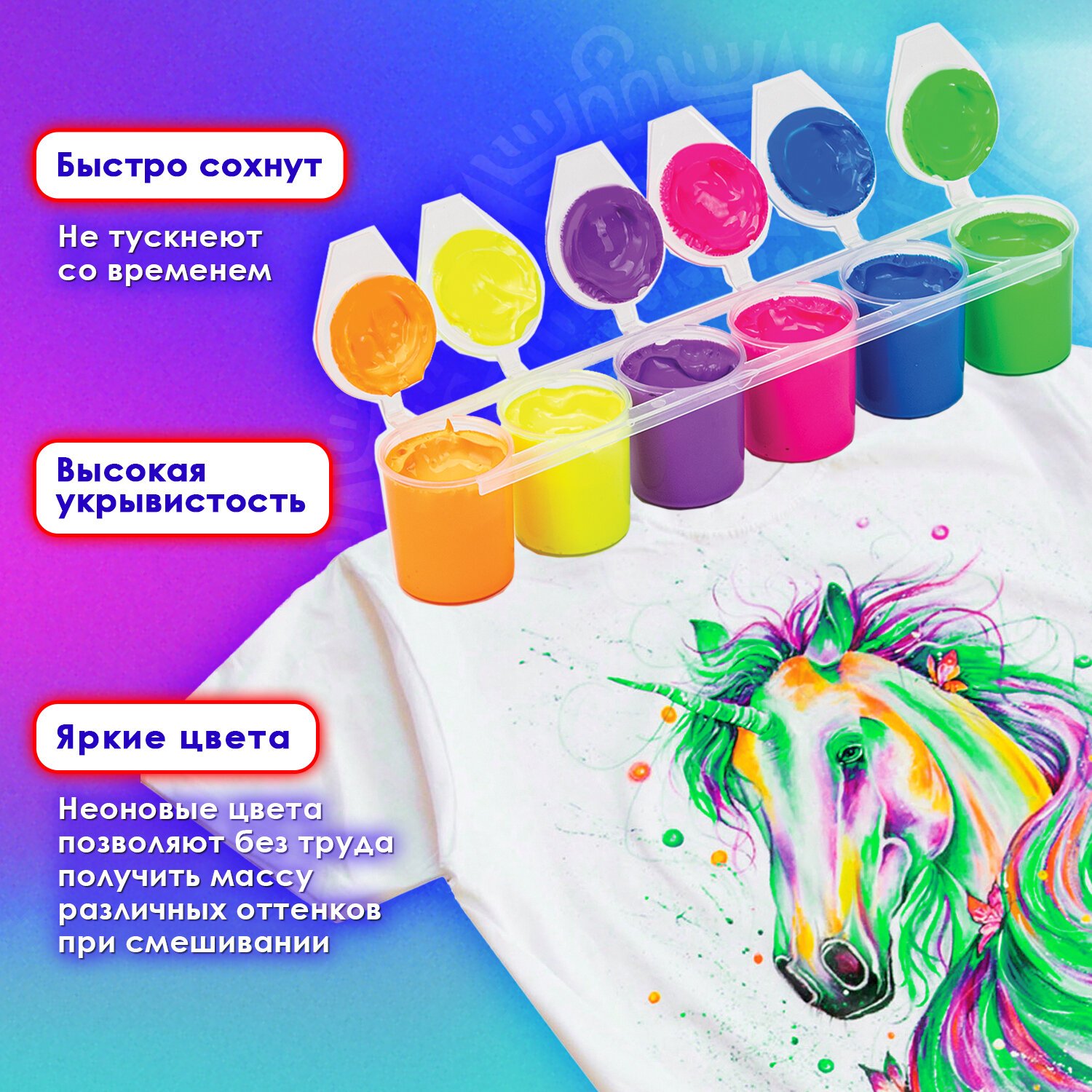 Краски акриловые по ткани НЕОН ОСТРОВ СОКРОВИЩ 6 цветов по 25 мл, 191697