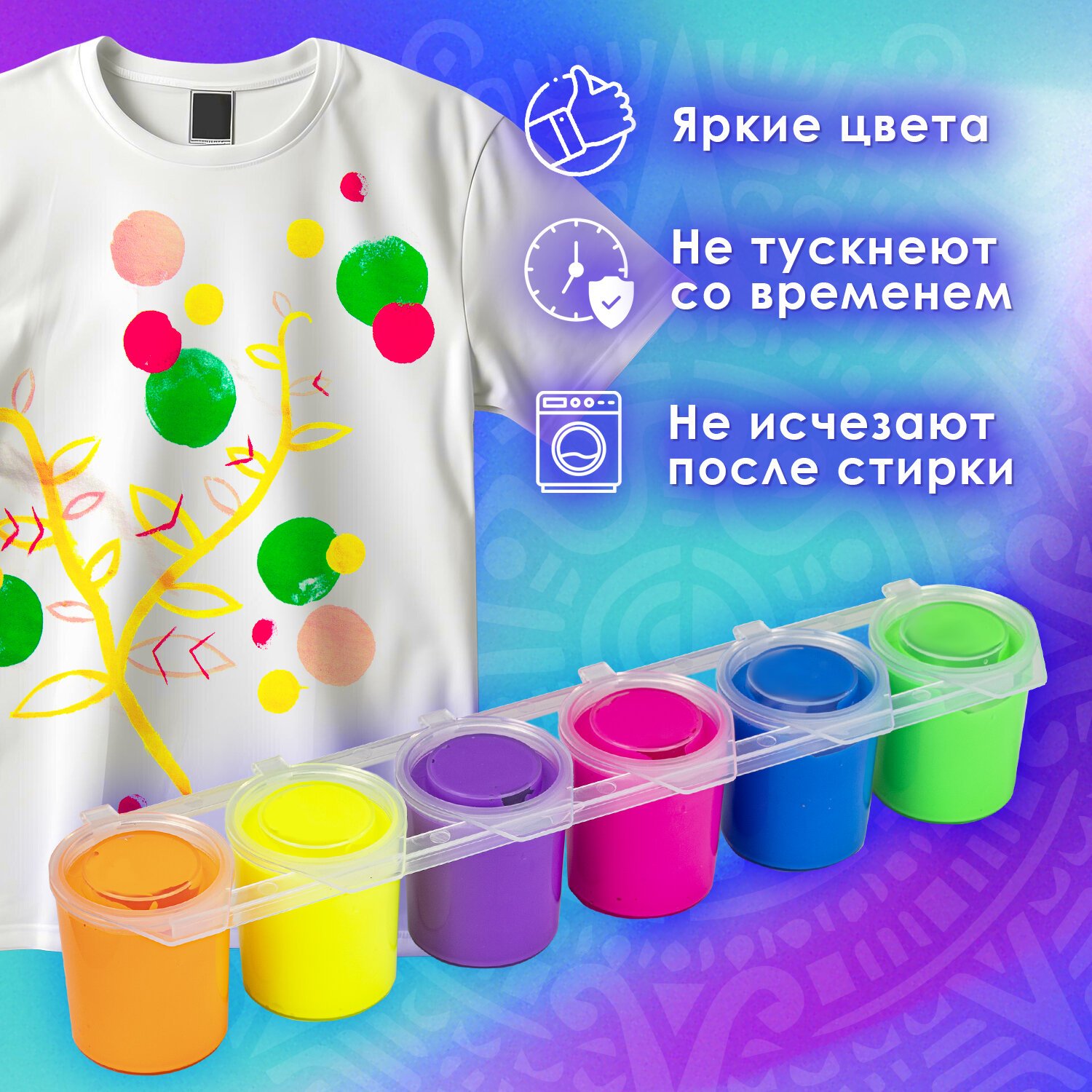 Краски по ткани акриловые "Я - Художник!", 6 цветов по 15 мл, в банках, 228411540