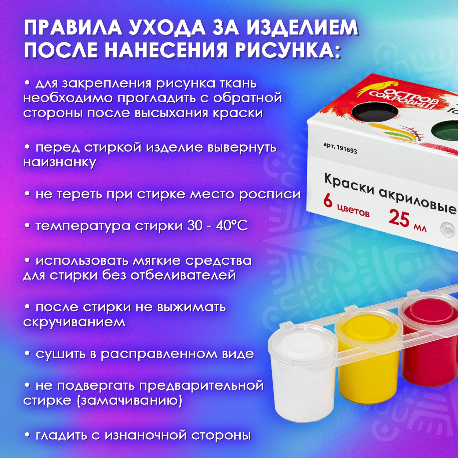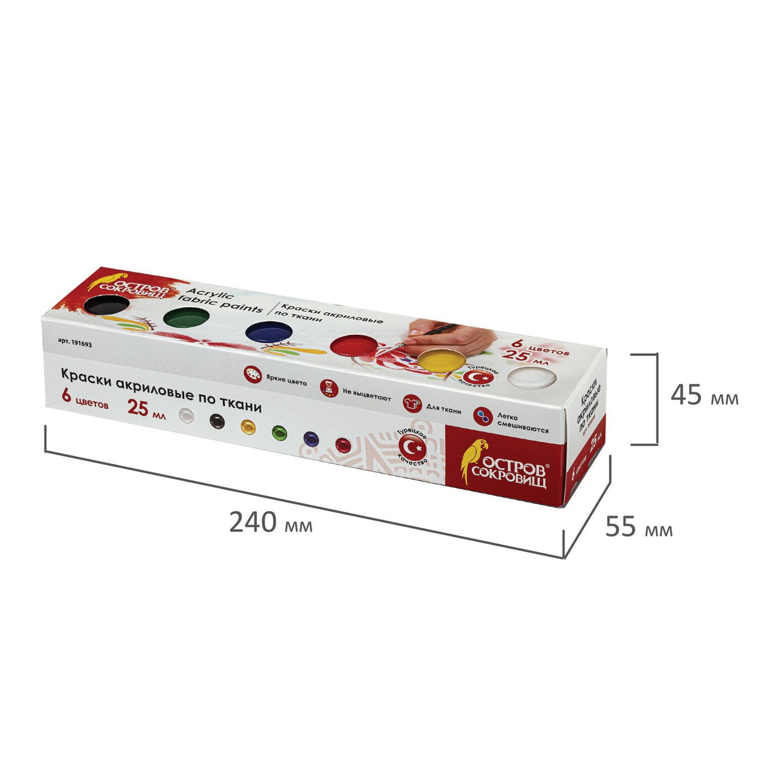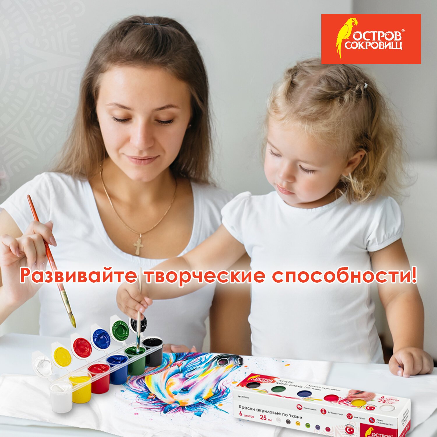 Краски акриловые по ткани ОСТРОВ СОКРОВИЩ 6 цветов по 25 мл, 191693