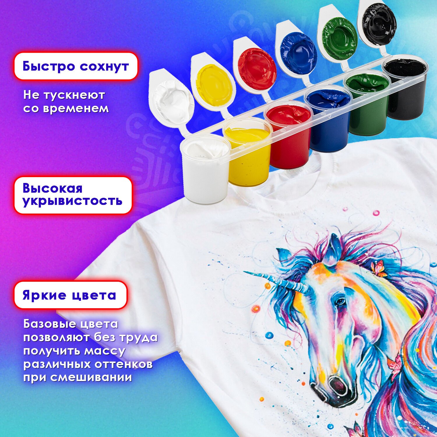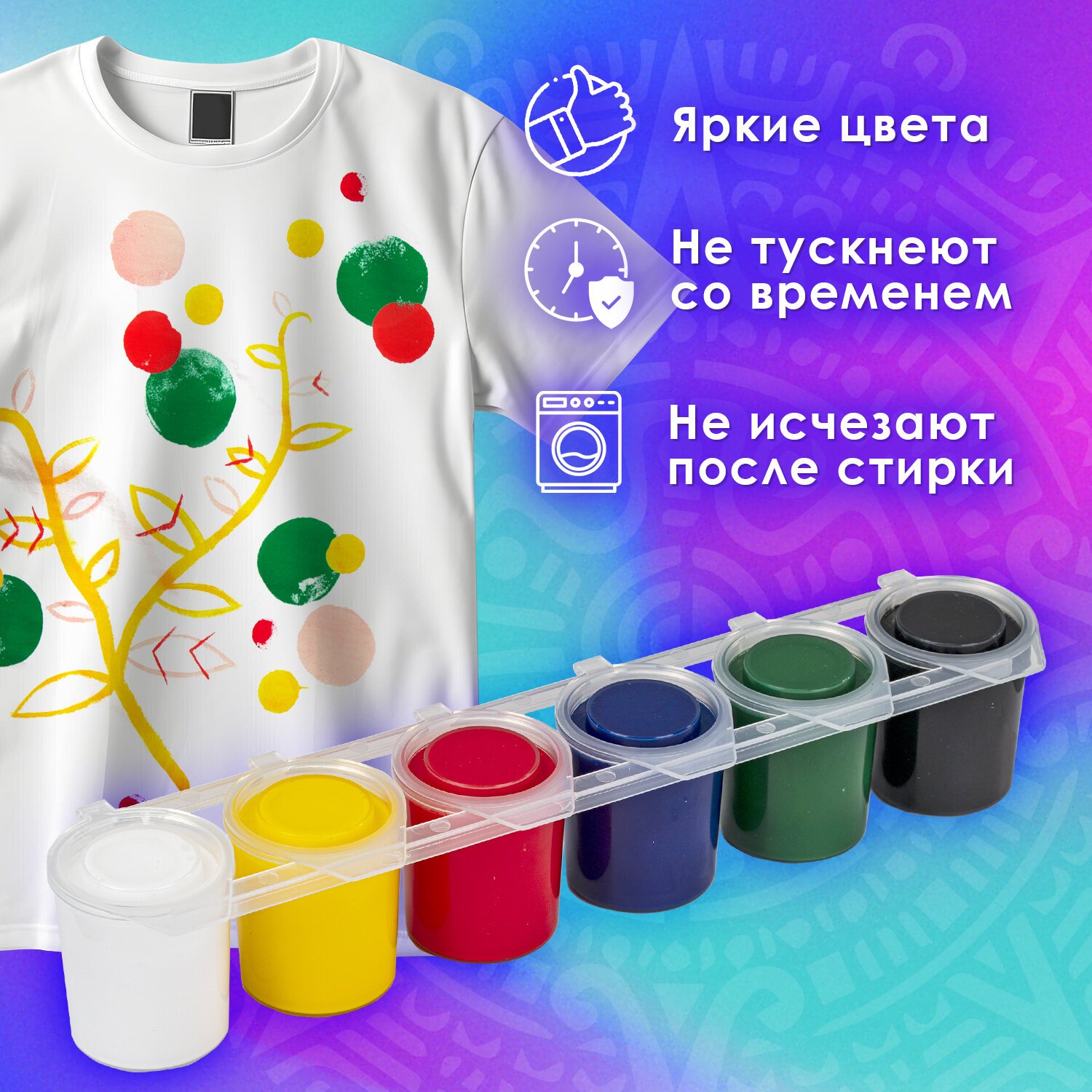 Краски по ткани акриловые "Я - Художник!", 6 цветов по 15 мл, в банках, 228411540