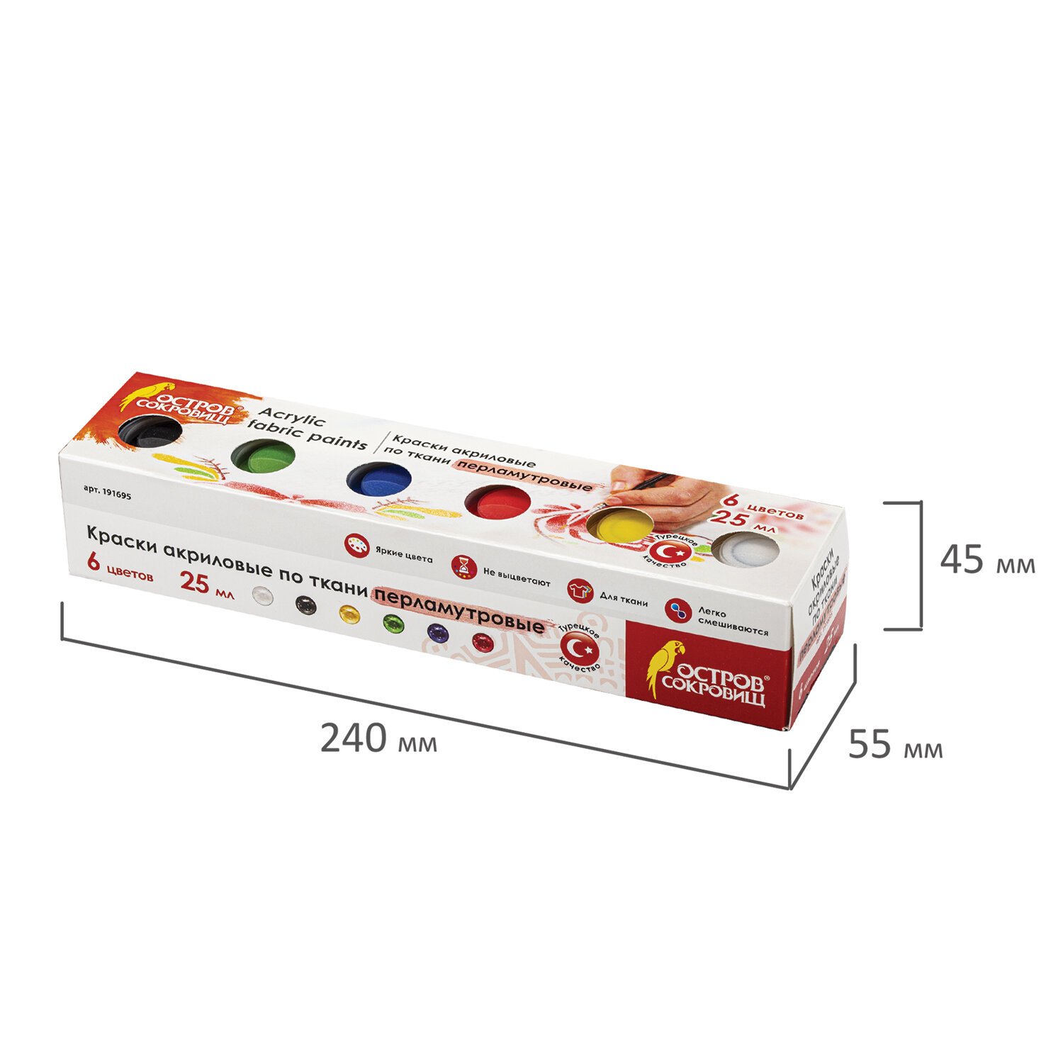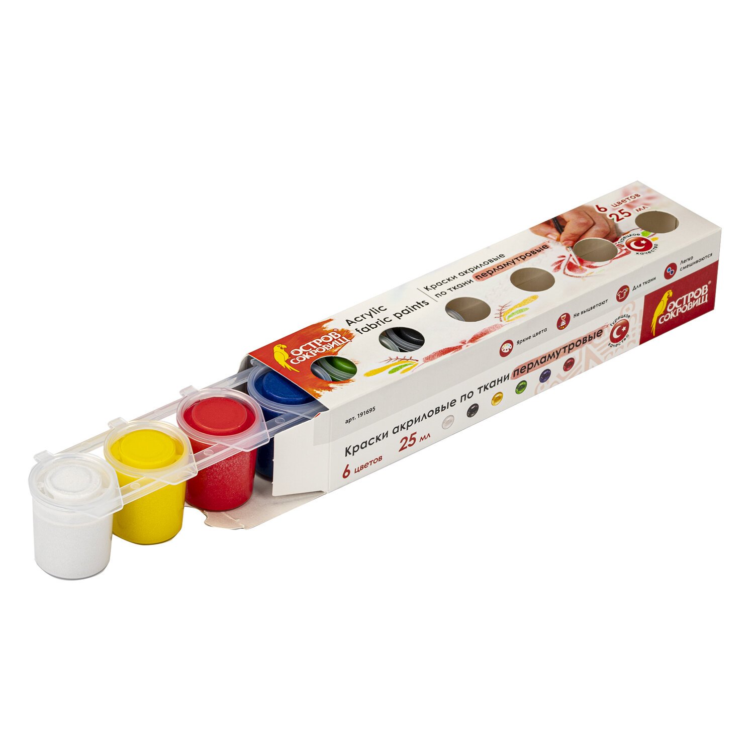 Краски акриловые по ткани ПЕРЛАМУТРОВЫЕ ОСТРОВ СОКРОВИЩ 6 цветов по 25 мл, 191695