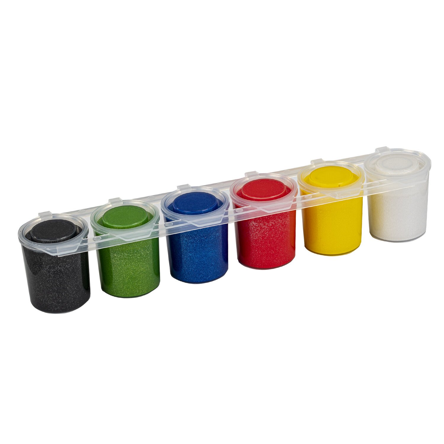 В наборе 6 насыщенных цветов с перламутровым эффектом: белый, черный, желтый, зеленый, красный, синий. Краски обладают высокой кроющей способностью, отлично смешиваются, не тускнеют после высыхания и не выгорают при воздействии солнечных лучей.