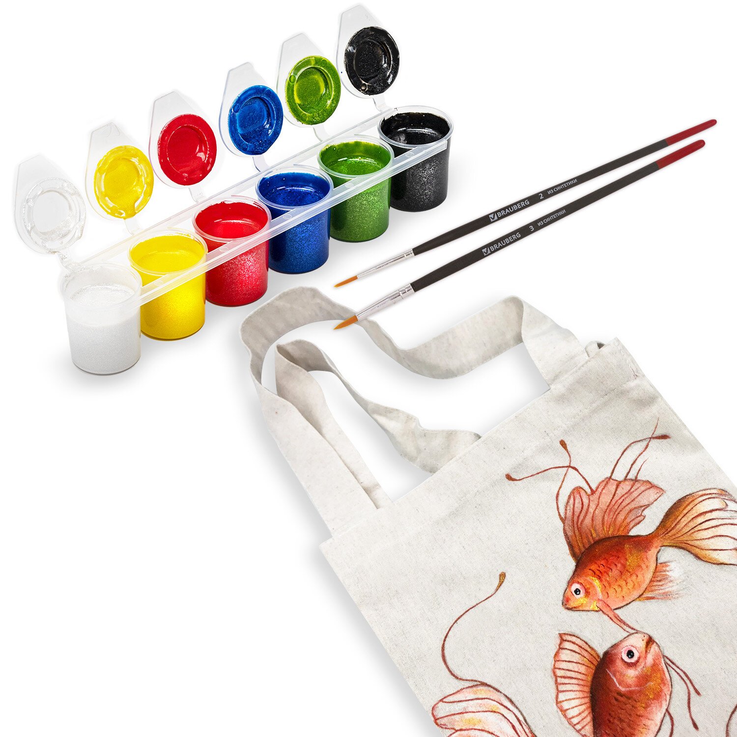 Краски акриловые по ткани 6 цветов по 20 мл, BRAUBERG HOBBY, 192441