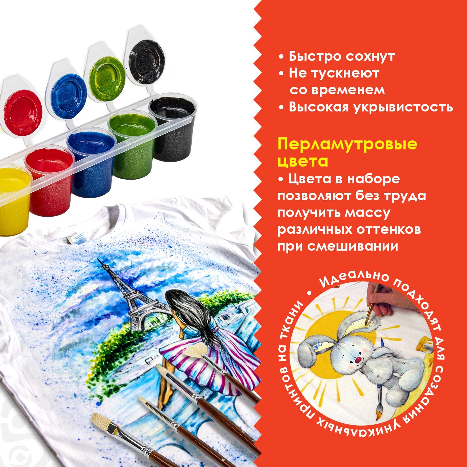 Краски по ткани акриловые "Я - Художник!", 6 цветов по 15 мл, в банках, 228411540
