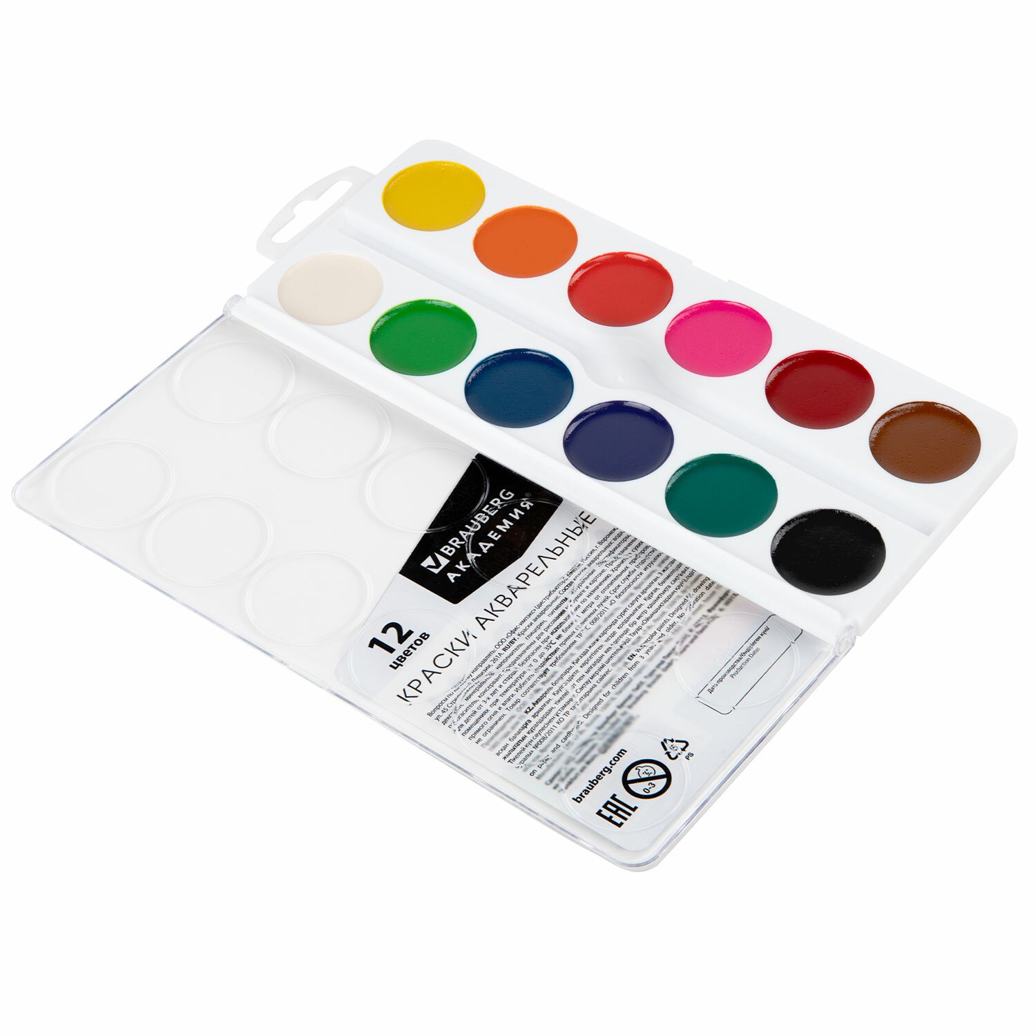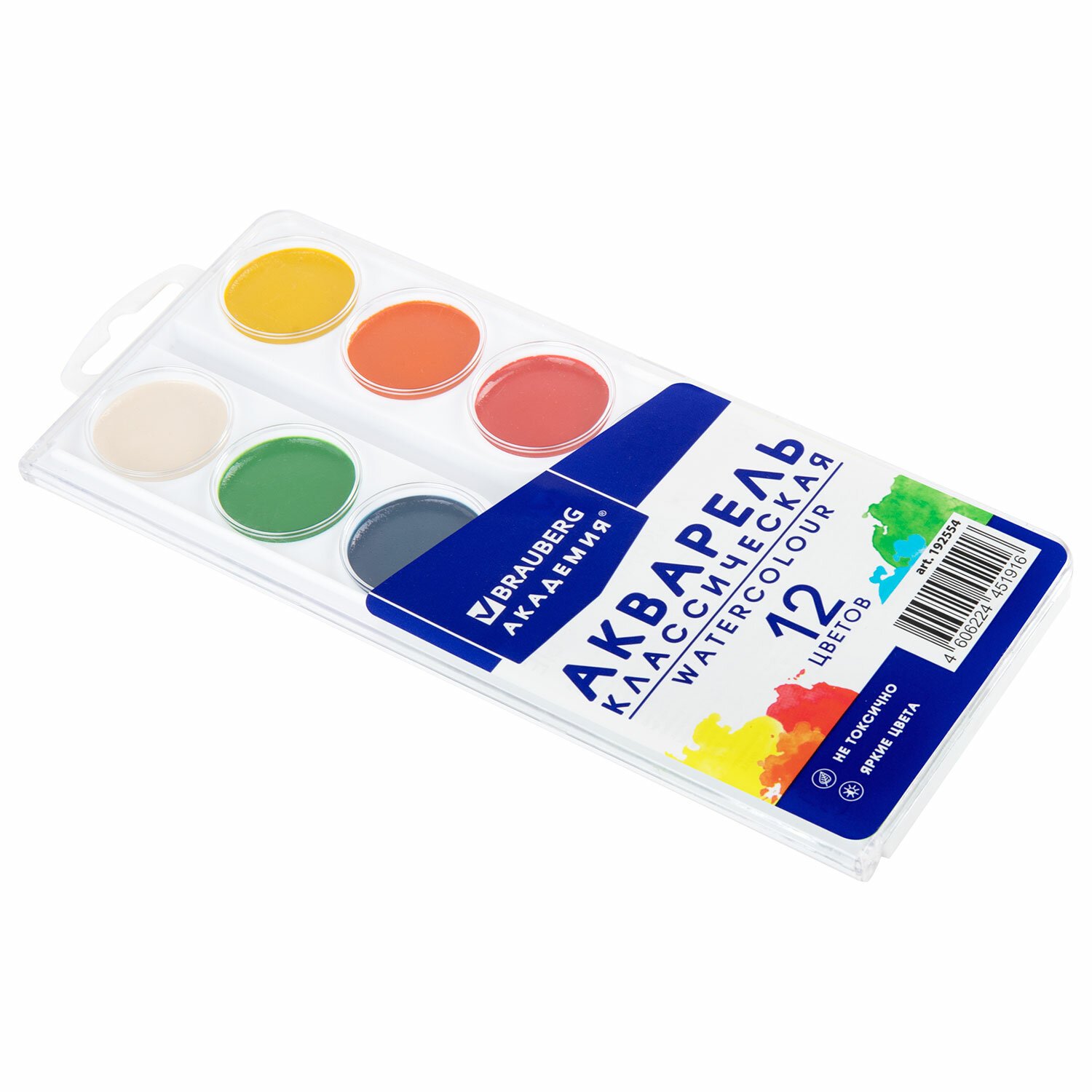 Краски акварельные BRAUBERG 12 цветов "АКАДЕМИЯ КЛАССИЧЕСКАЯ", медовые, круглые кюветы, 192554