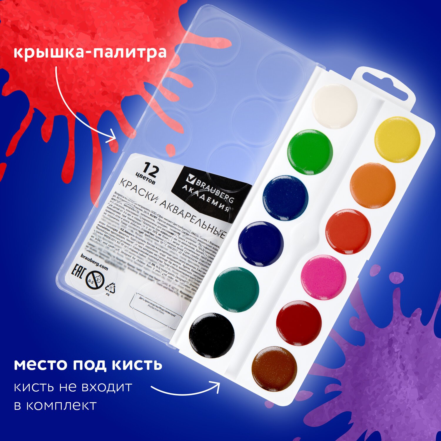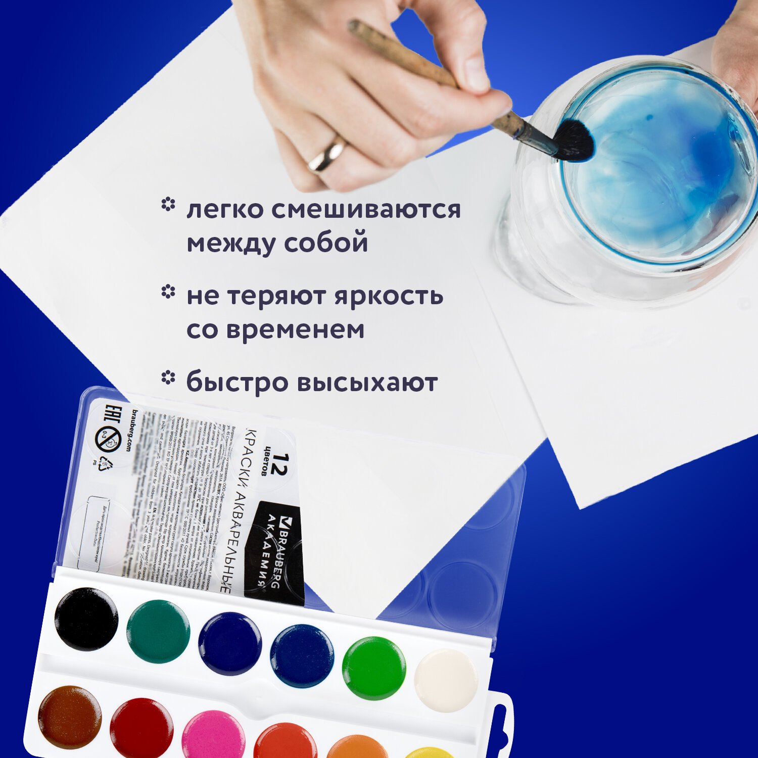 Краски акварельные BRAUBERG имеют яркие насыщенные цвета, дают множество оттенков при смешивании и обеспечивают однородное окрашивание.