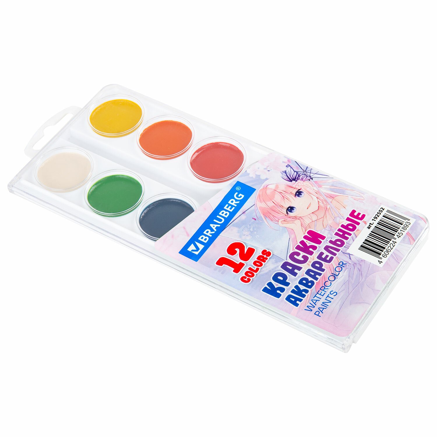 Краски акварельные BRAUBERG 12 цветов "Аниме", медовые, круглые кюветы, 192552