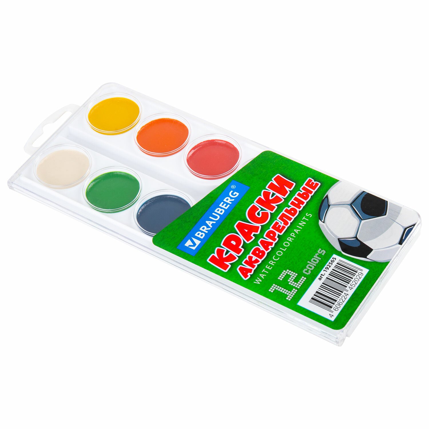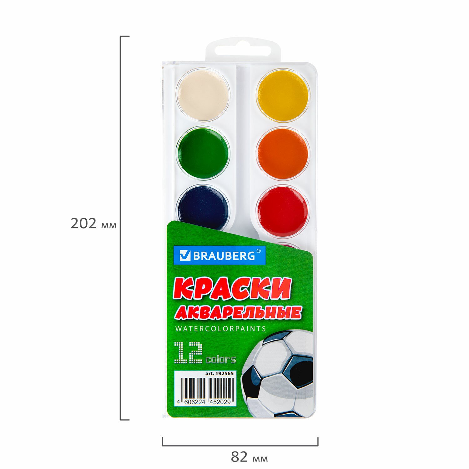 Краски акварельные BRAUBERG 12 цветов "Футбол", медовые, круглые кюветы, 192565
