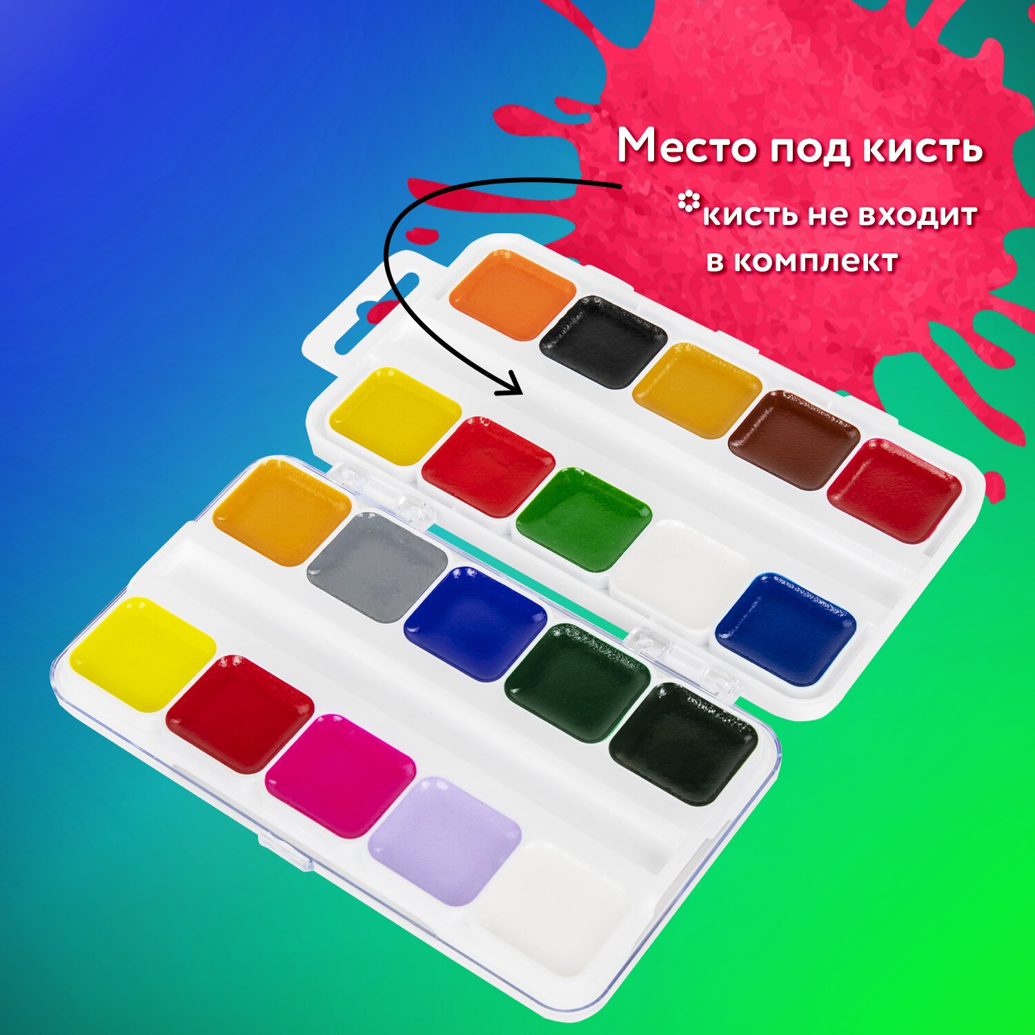 Краски акварельные BRAUBERG KIDS, медовые, 20 цветов, квадратные кюветы, пластиковый пенал, 192283