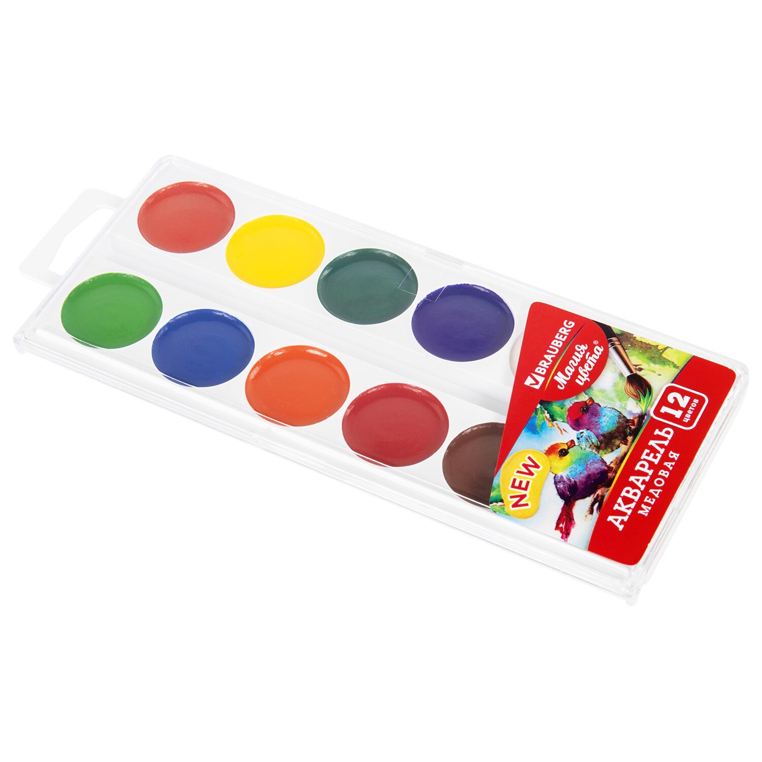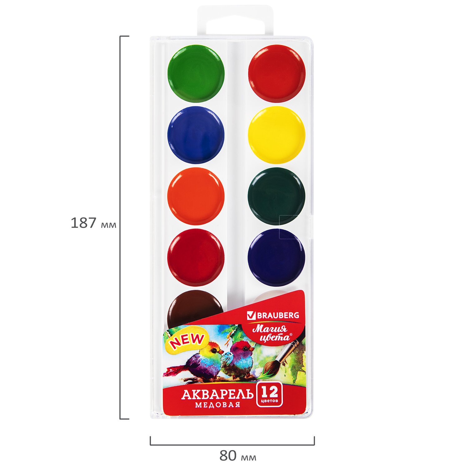 Краски акварельные BRAUBERG "МАГИЯ ЦВЕТА NEW", медовые, 12 цветов, круглые кюветы, 192286