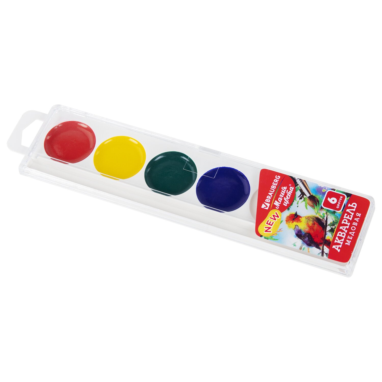 Краски акварельные BRAUBERG "МАГИЯ ЦВЕТА NEW", медовые, 6 цветов, круглые кюветы, пластик, 192285