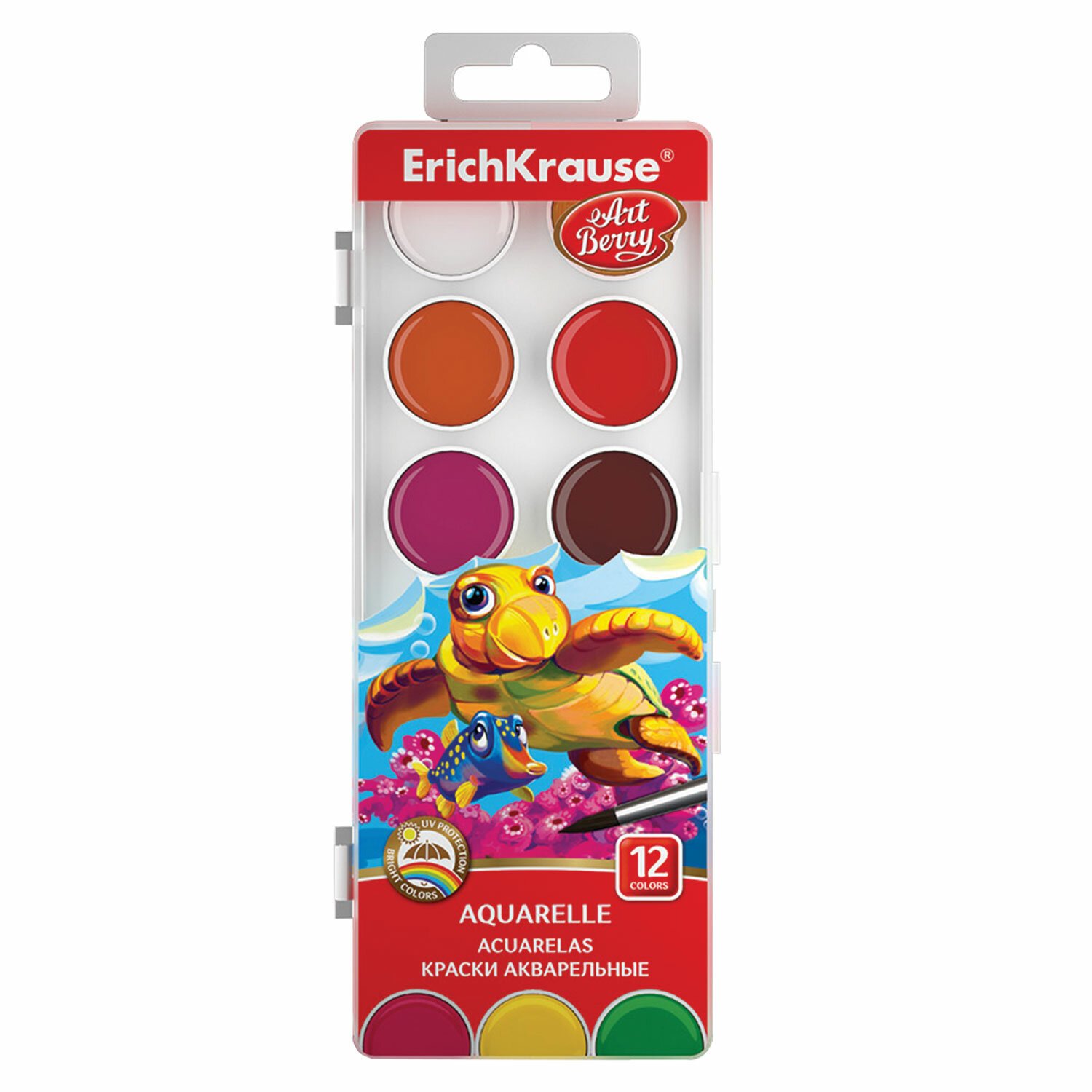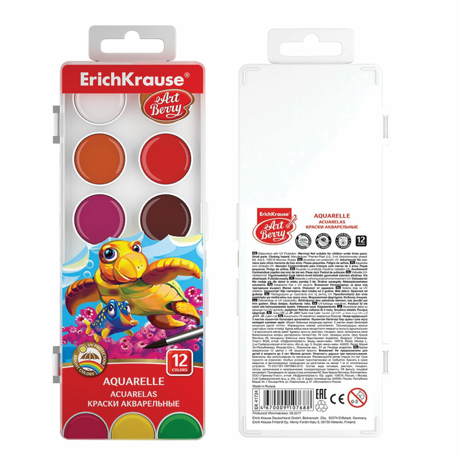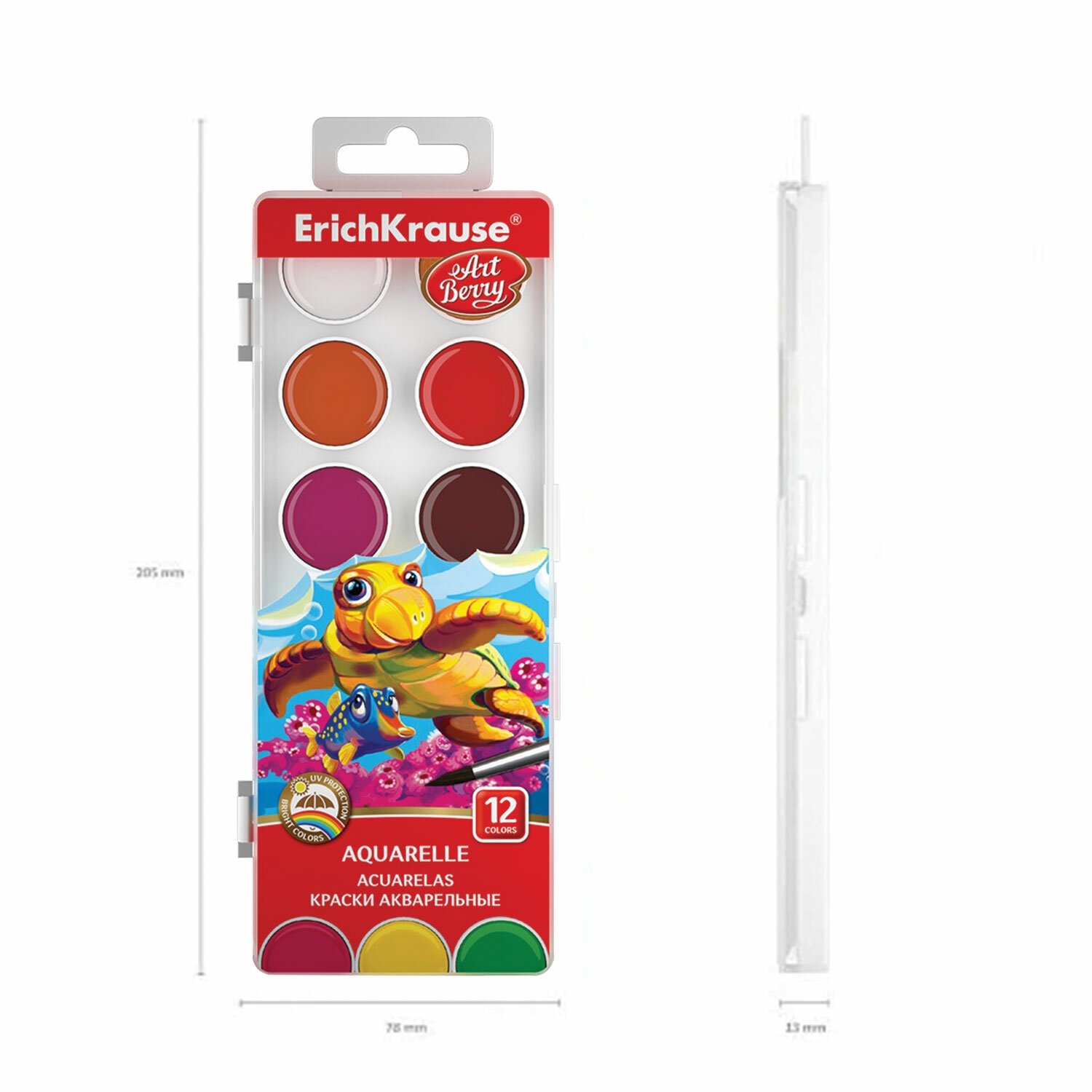 Краски акварельные ERICH KRAUSE "Artberry" с УФ защитой яркости, 12 цветов, пластиковый пенал, 41724