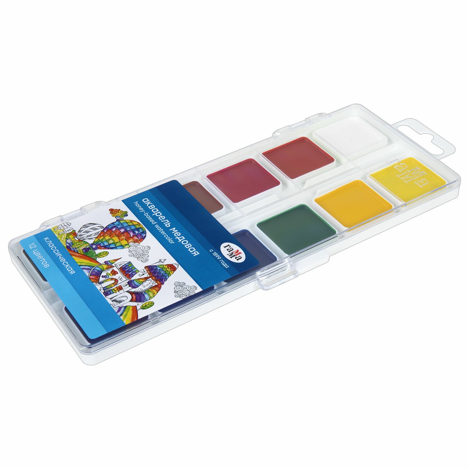 Краски акварельные ГАММА "Классическая", 12 цветов, медовая, пластиковый корпус, европодвес, 1009194