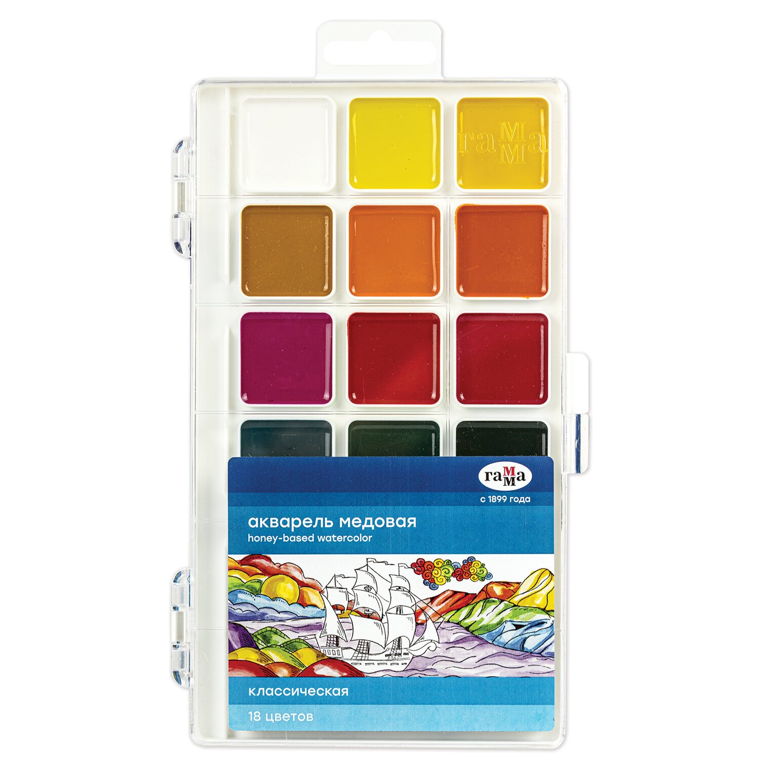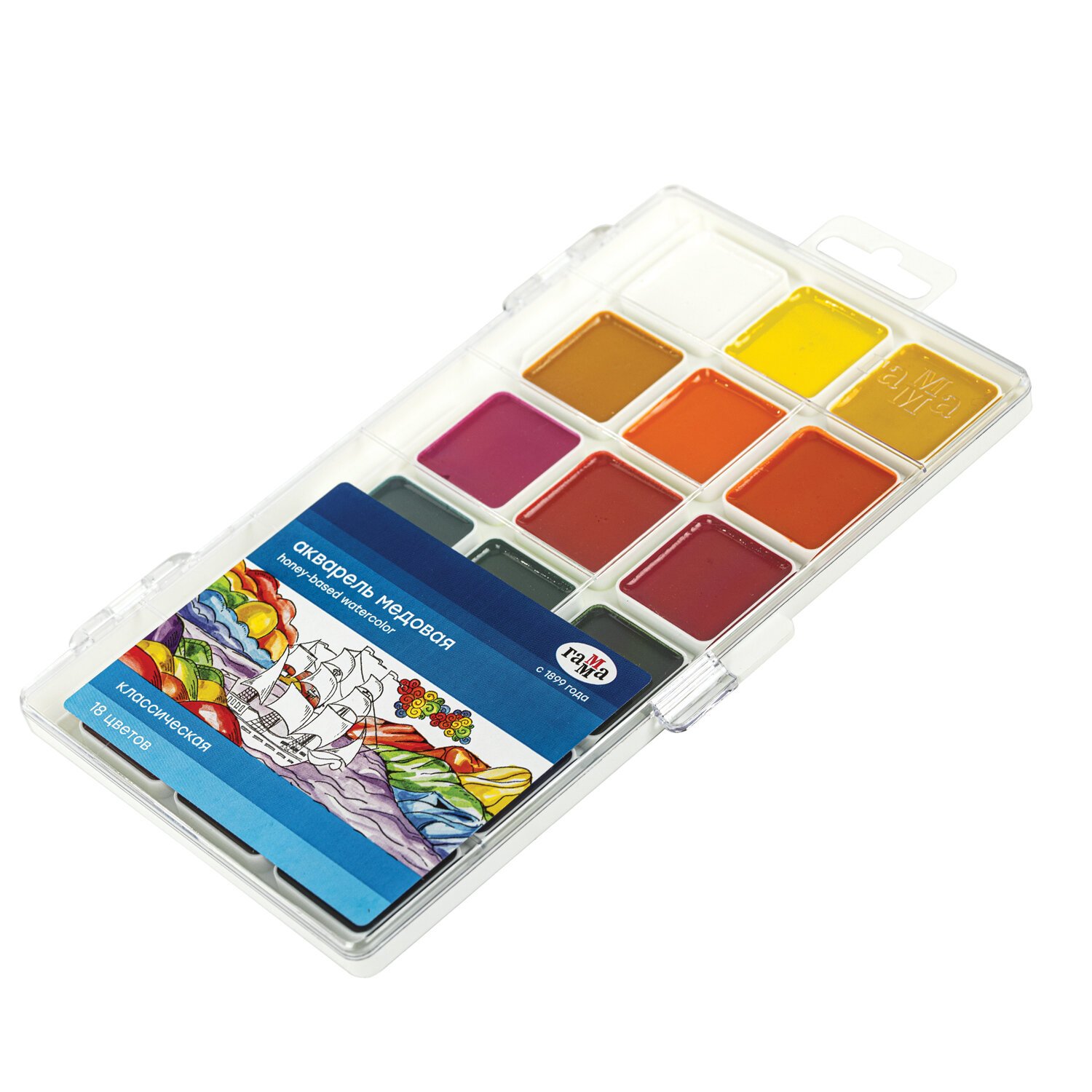 Краски акварельные ГАММА "Классическая", 18 цветов, медовая, пластиковый корпус, европодвес, 1009196