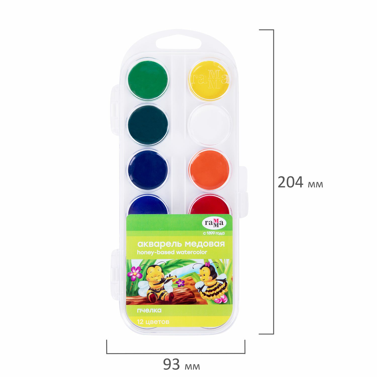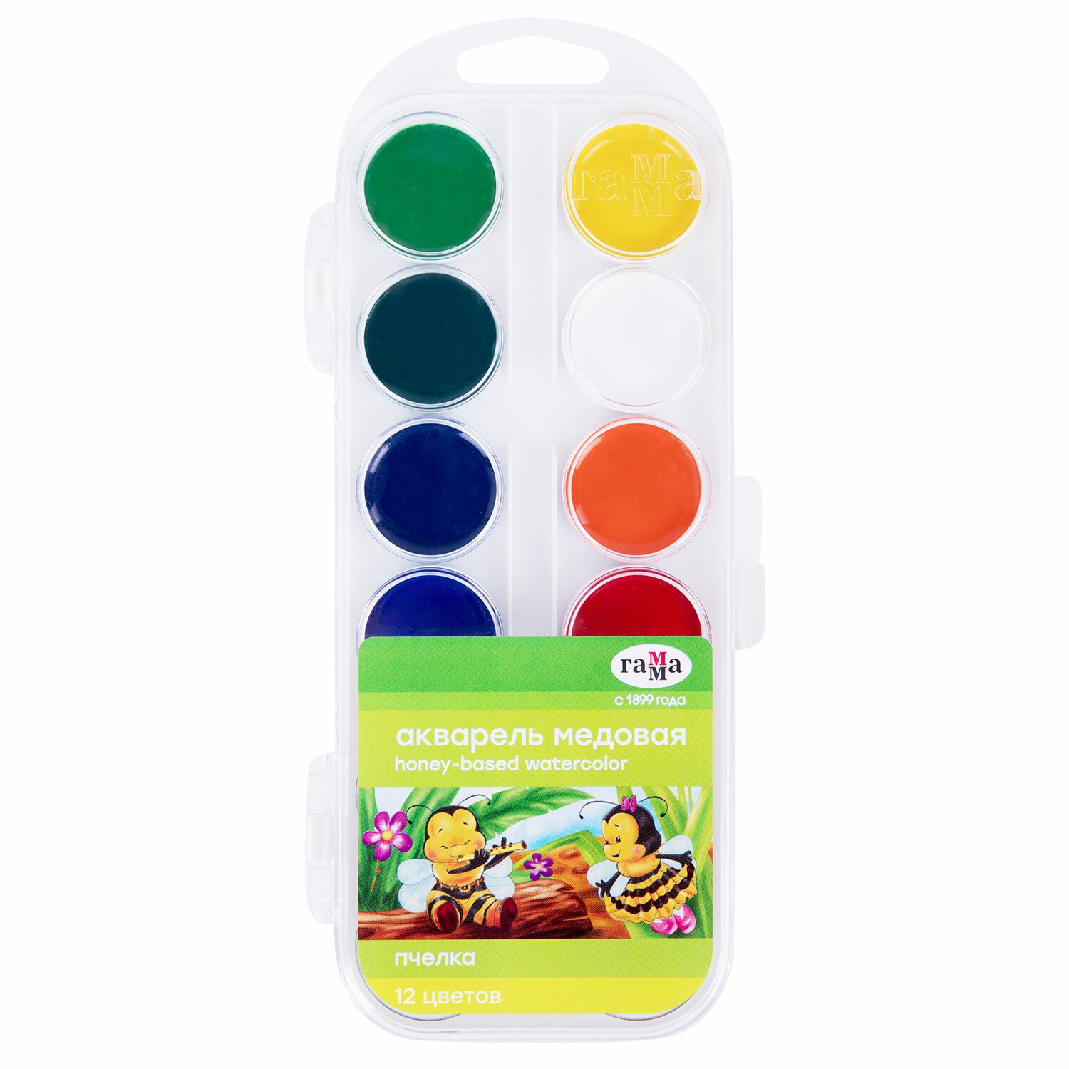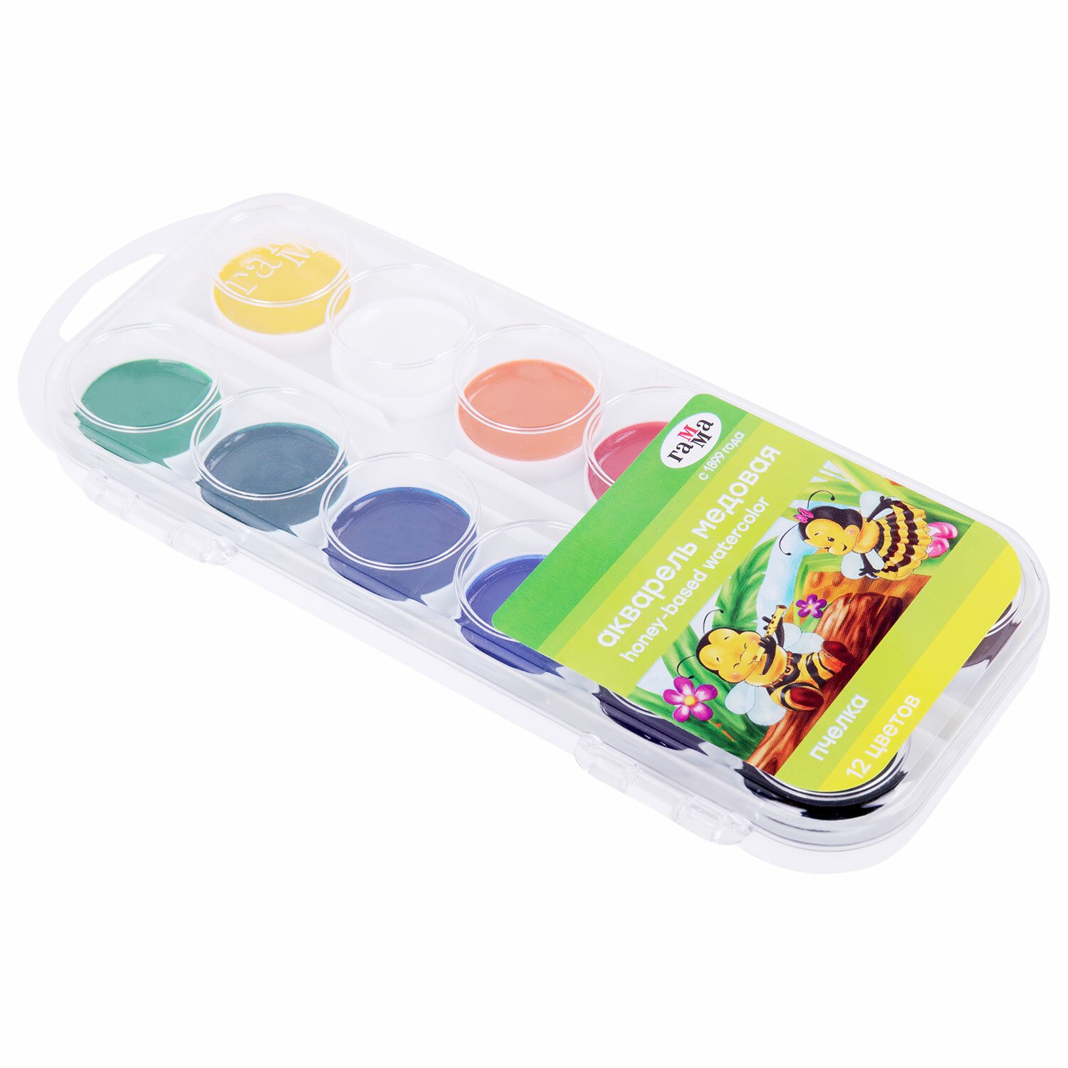 Краски акварельные ГАММА "Пчелка", 12 цветов, медовые, пластиковая коробка, европодвес, 212040
