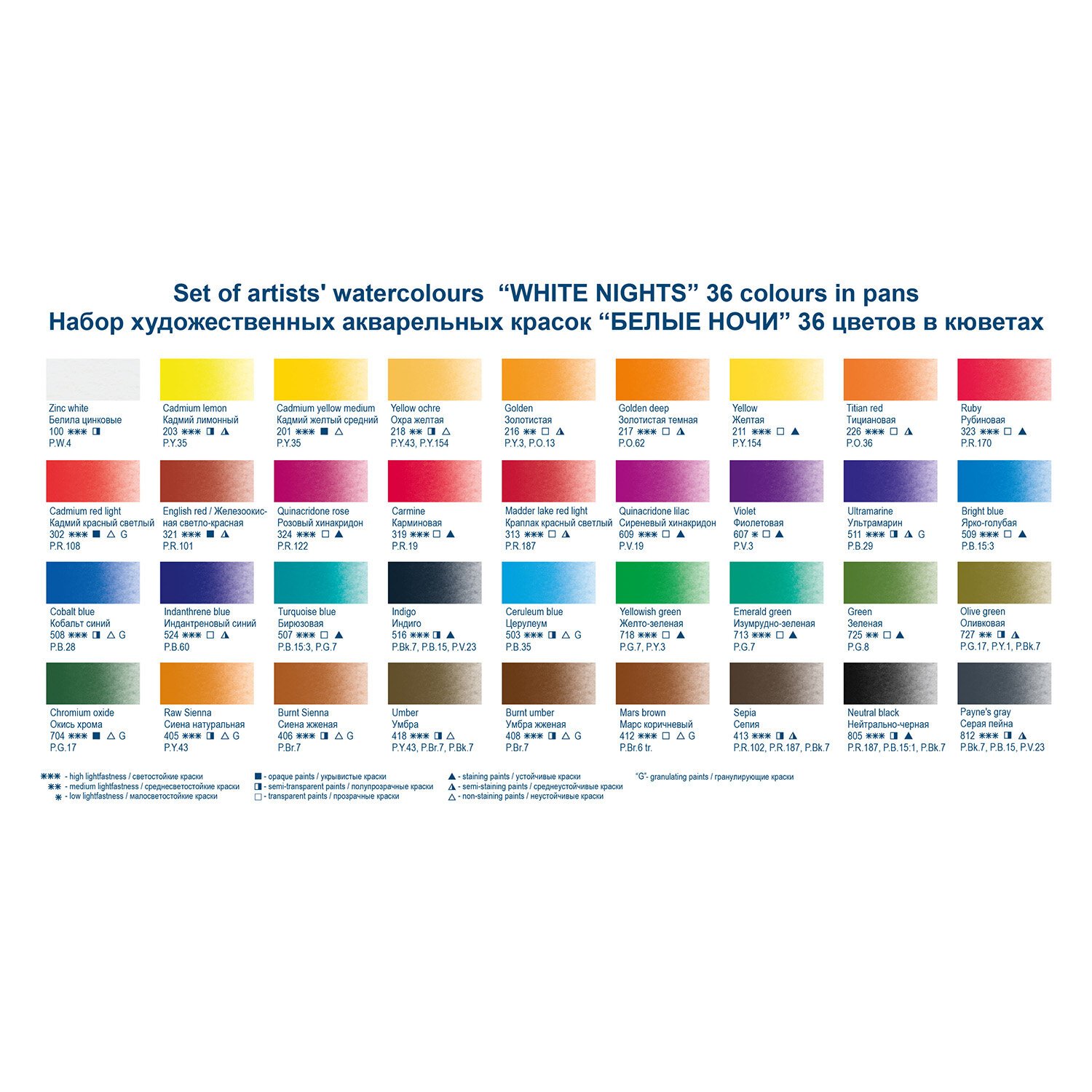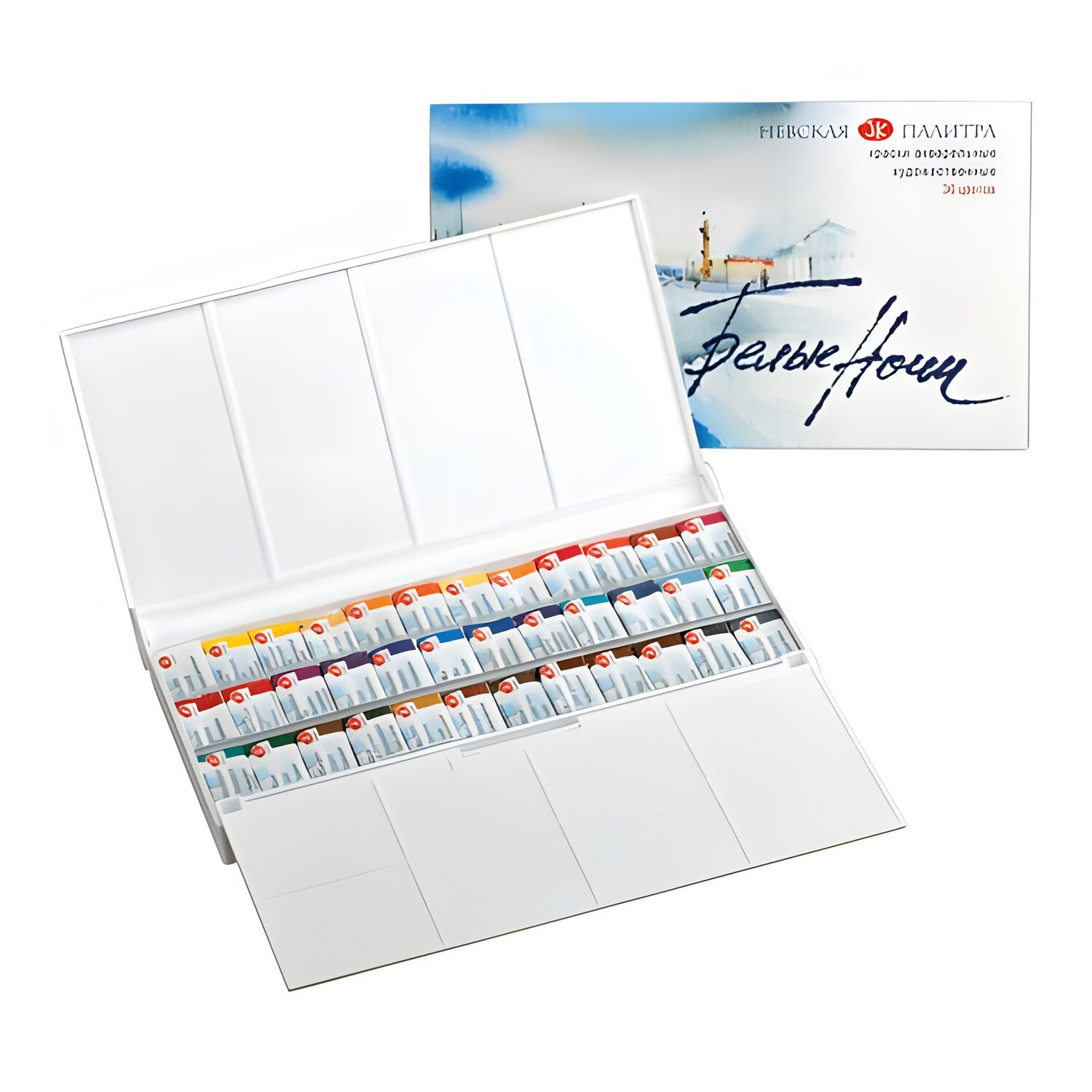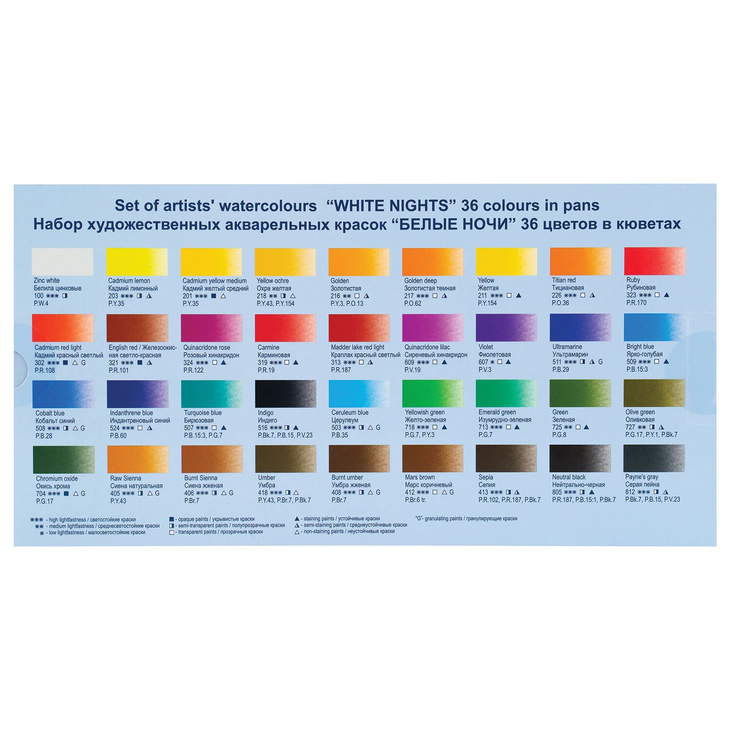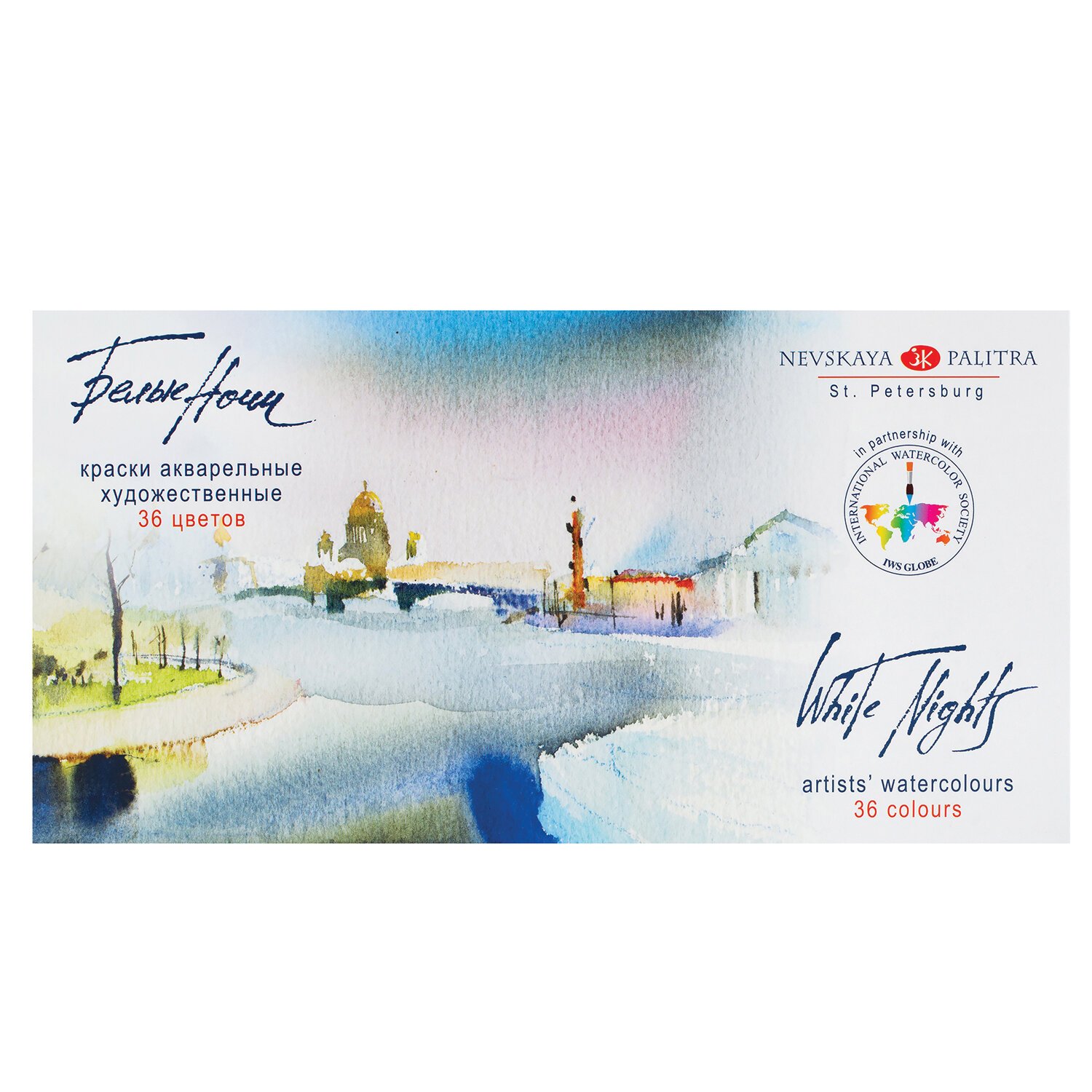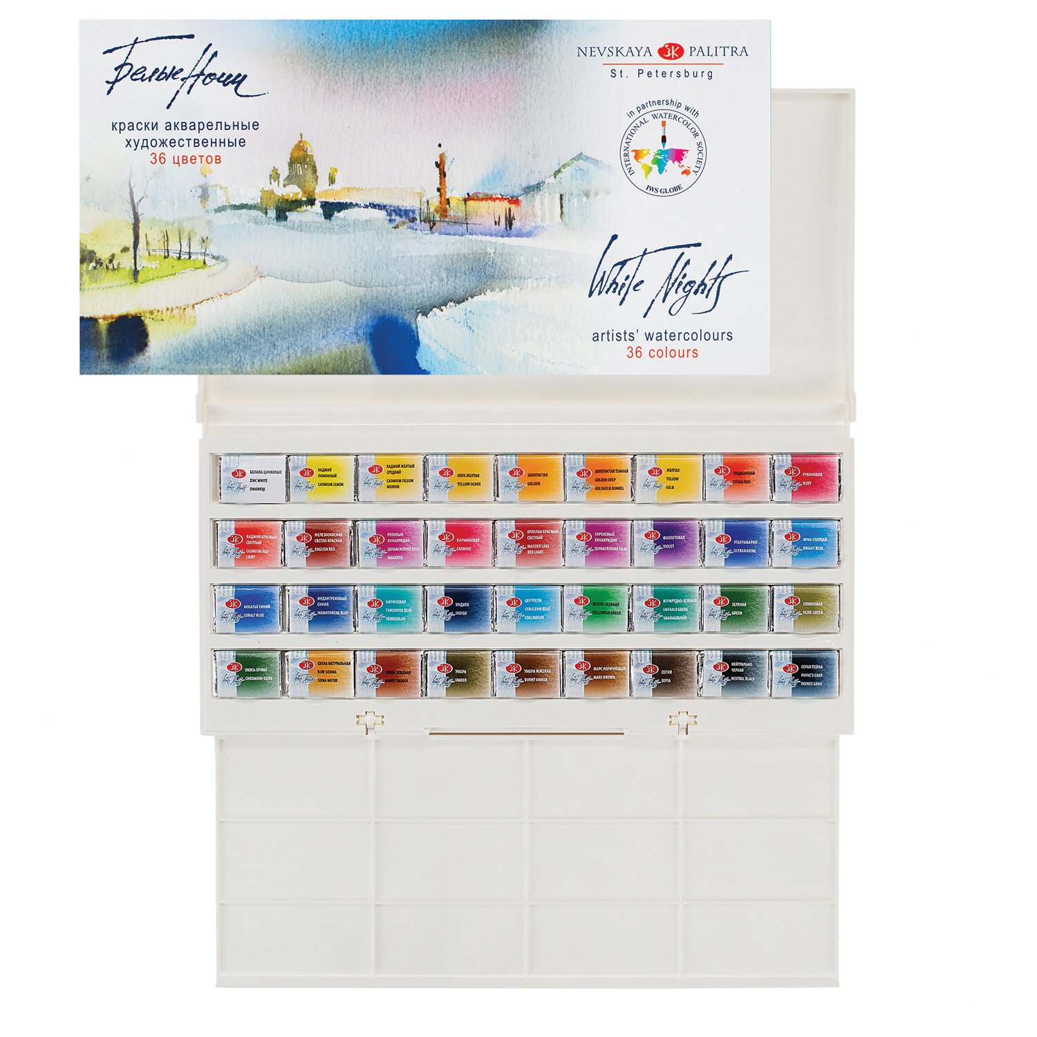 Краски акварельные художественные "Белые ночи", 36 цветов, кювета 2,5 мл, палитра, пластиковая коробка, 1942258