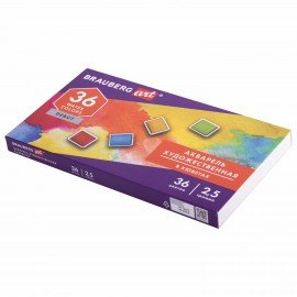 Акварель художественная в кюветах НАБОР 36 цветов по 2,5 г, BRAUBERG ART DEBUT, 191779