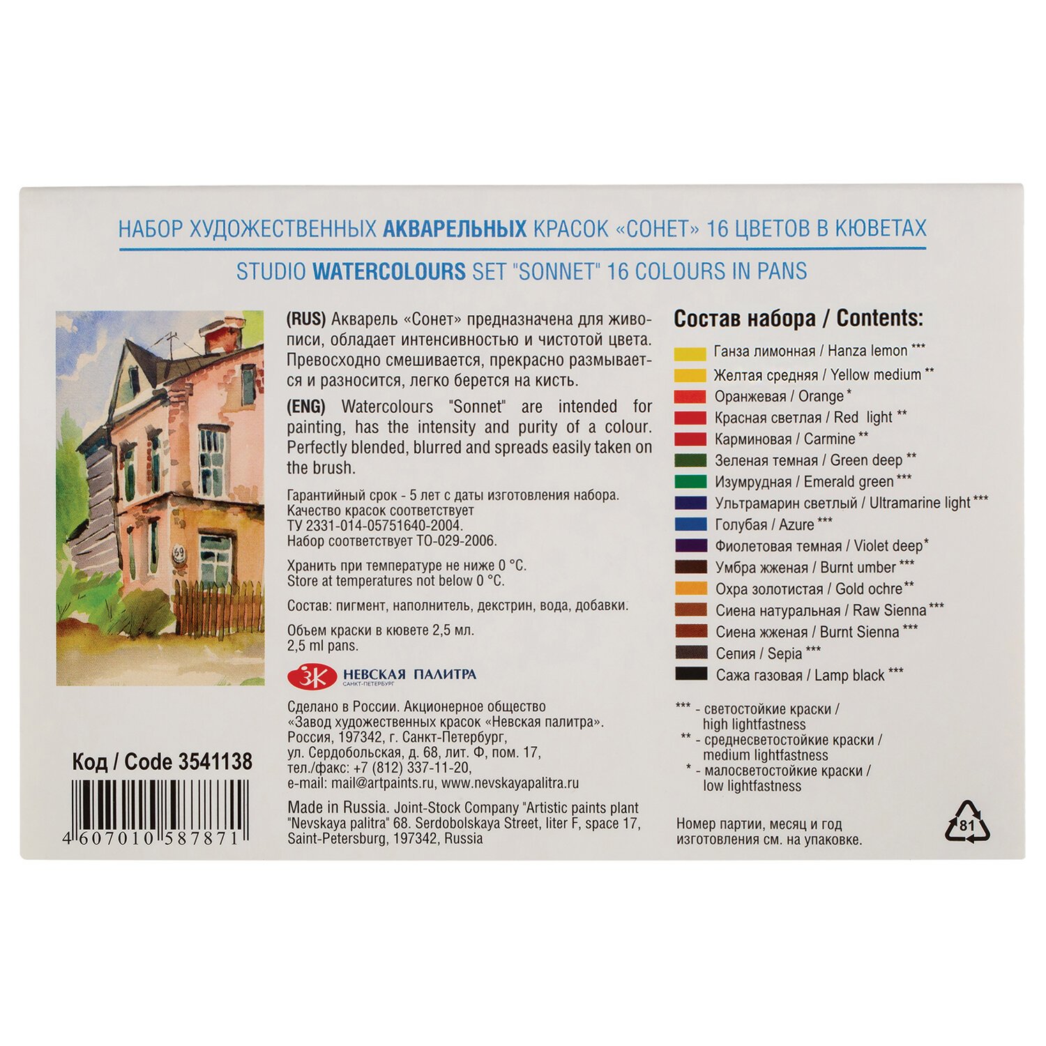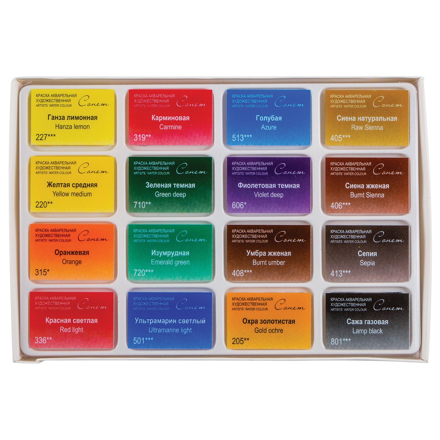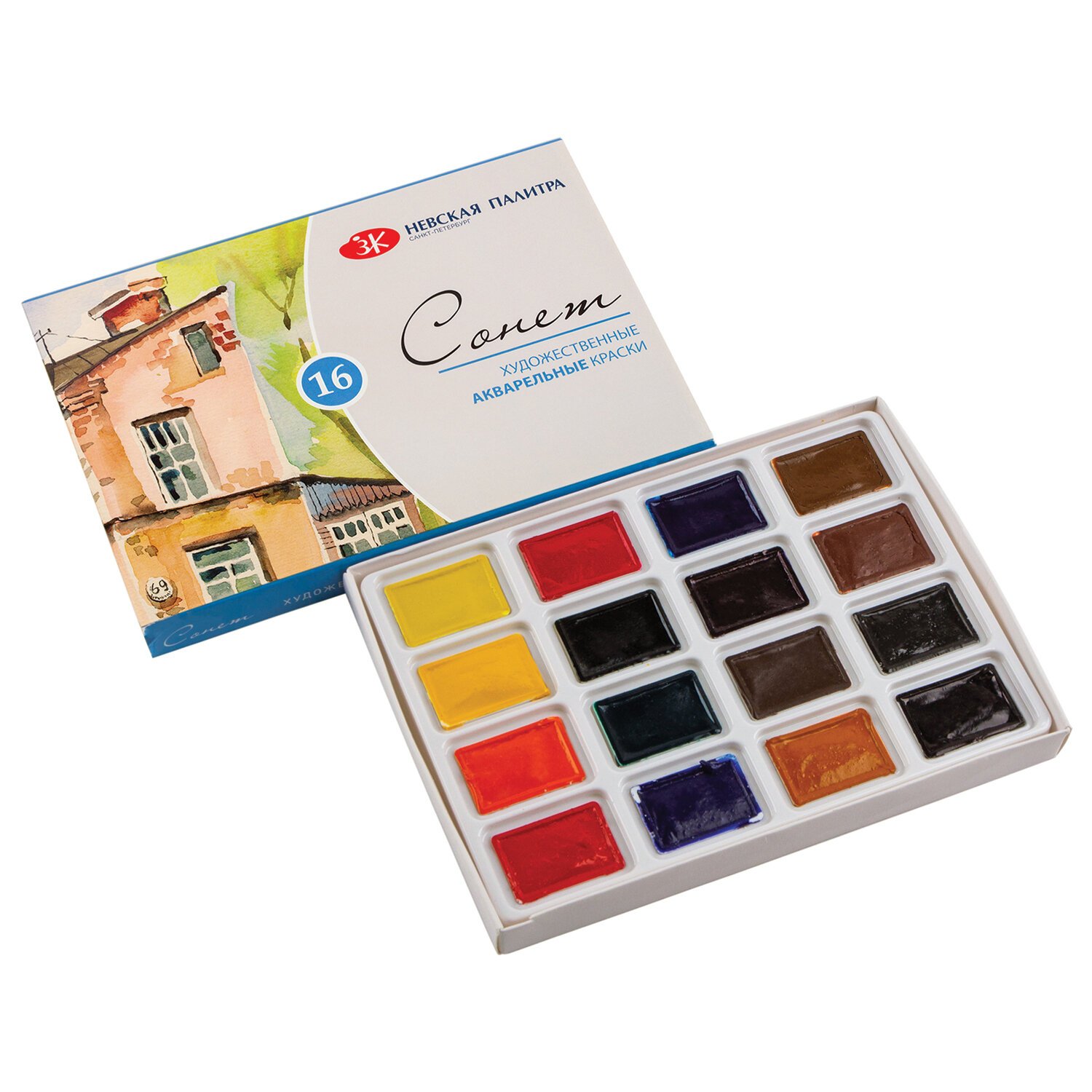 Краски акварельные художественные "Сонет", 16 цветов, кювета 2,5 мл, картонная коробка, 3541138