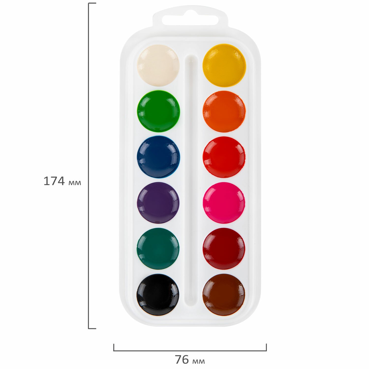 Краски акварельные BRAUBERG KIDS, 12 ярких цветов, круглые кюветы, пластиковый пенал, 191806