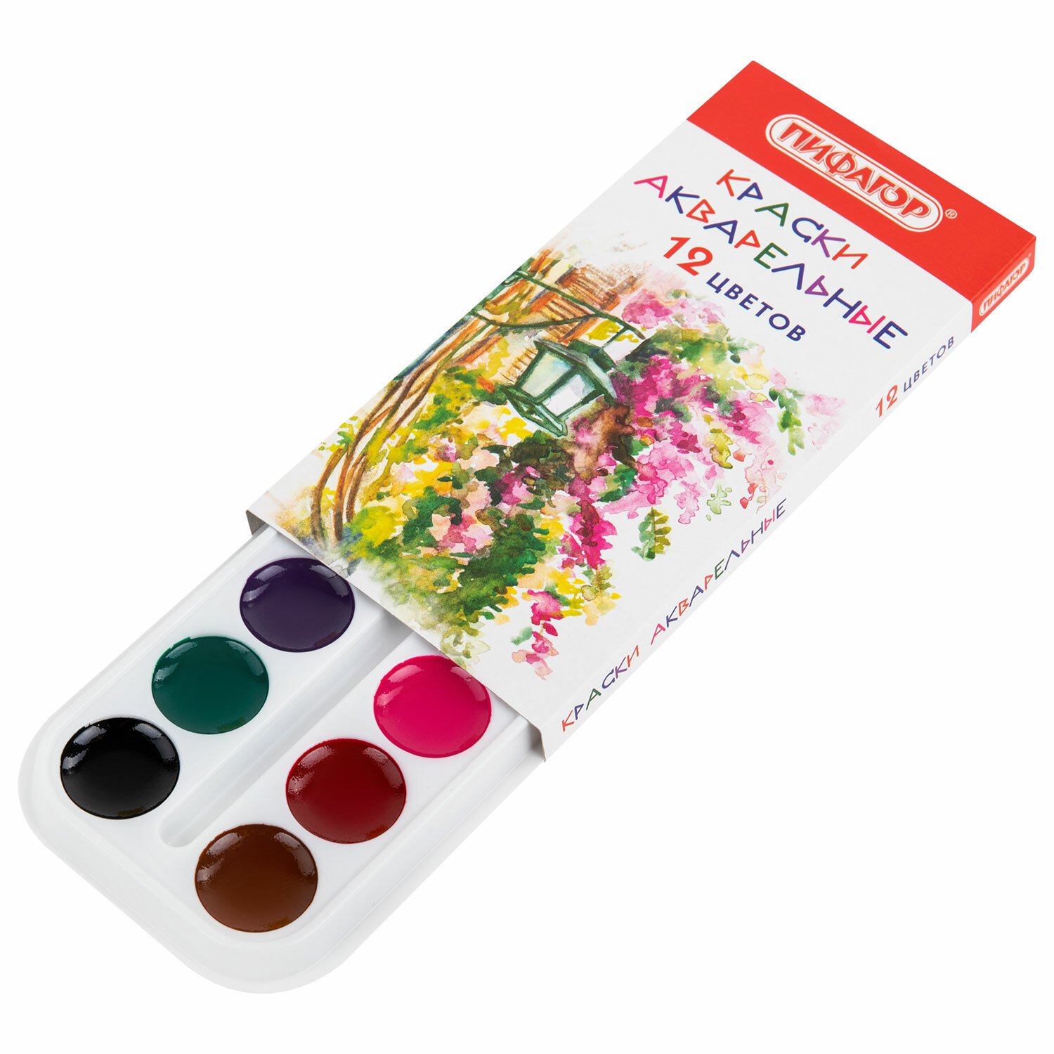 Краски акварельные медовые ПИФАГОР "ЭНИКИ-БЕНИКИ NEW", 12 цветов, картонная коробка европодвес, 192518