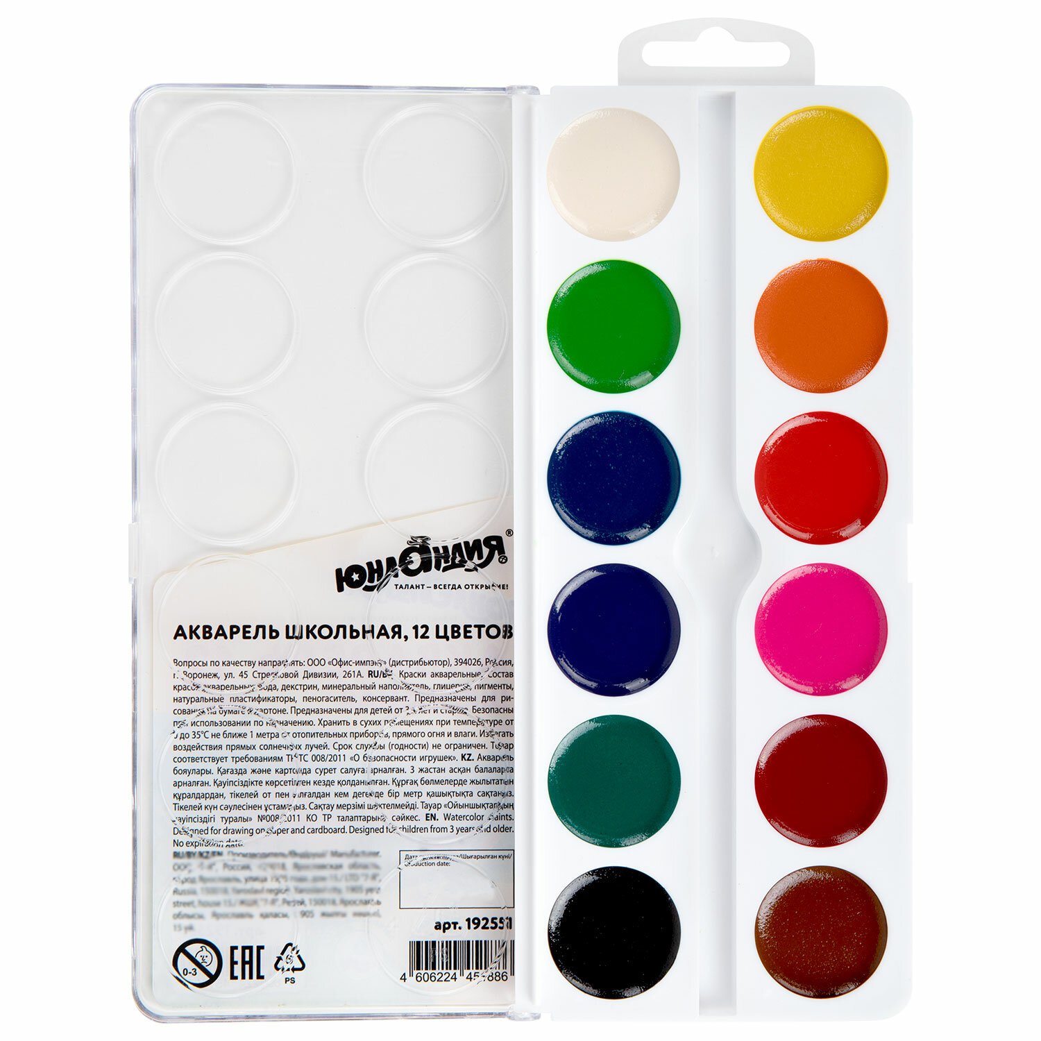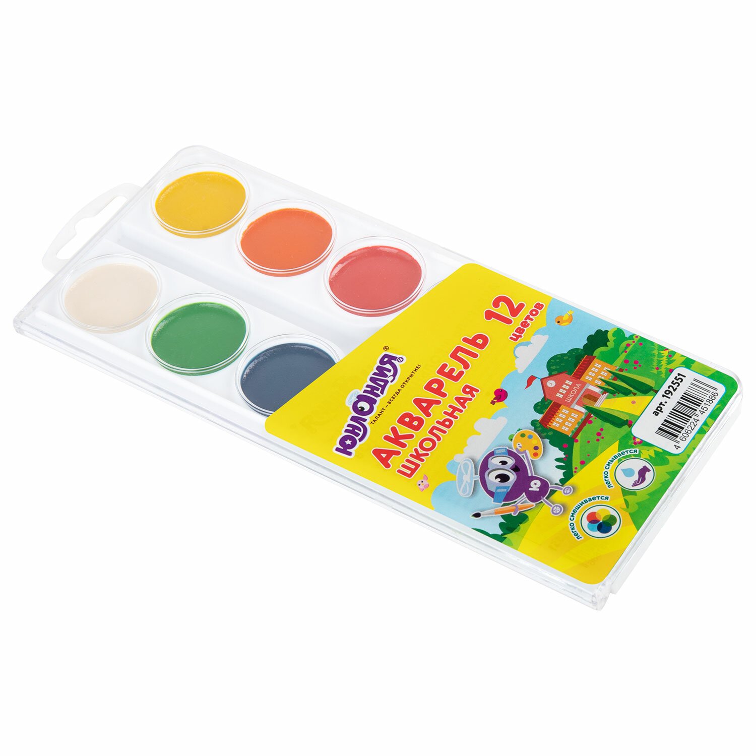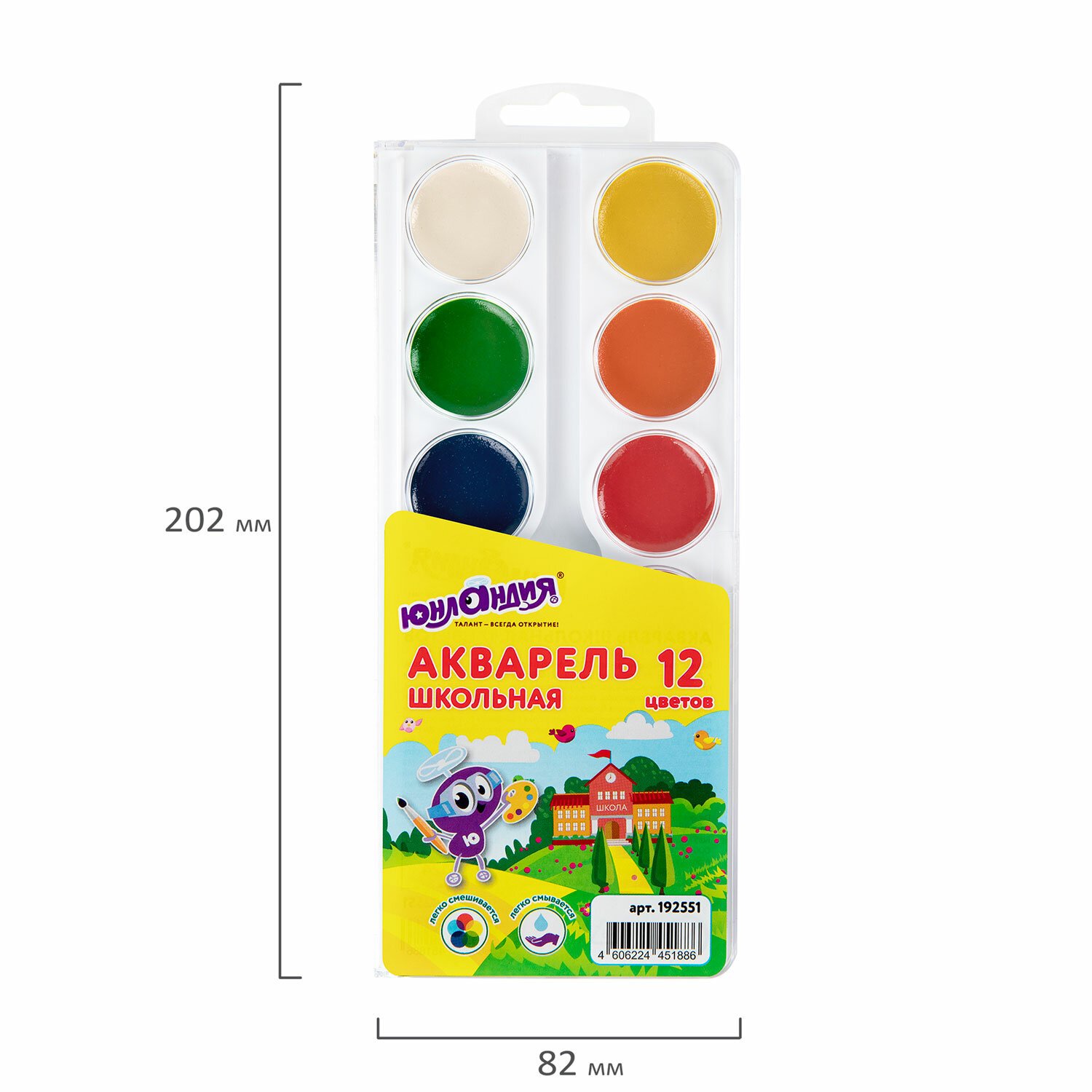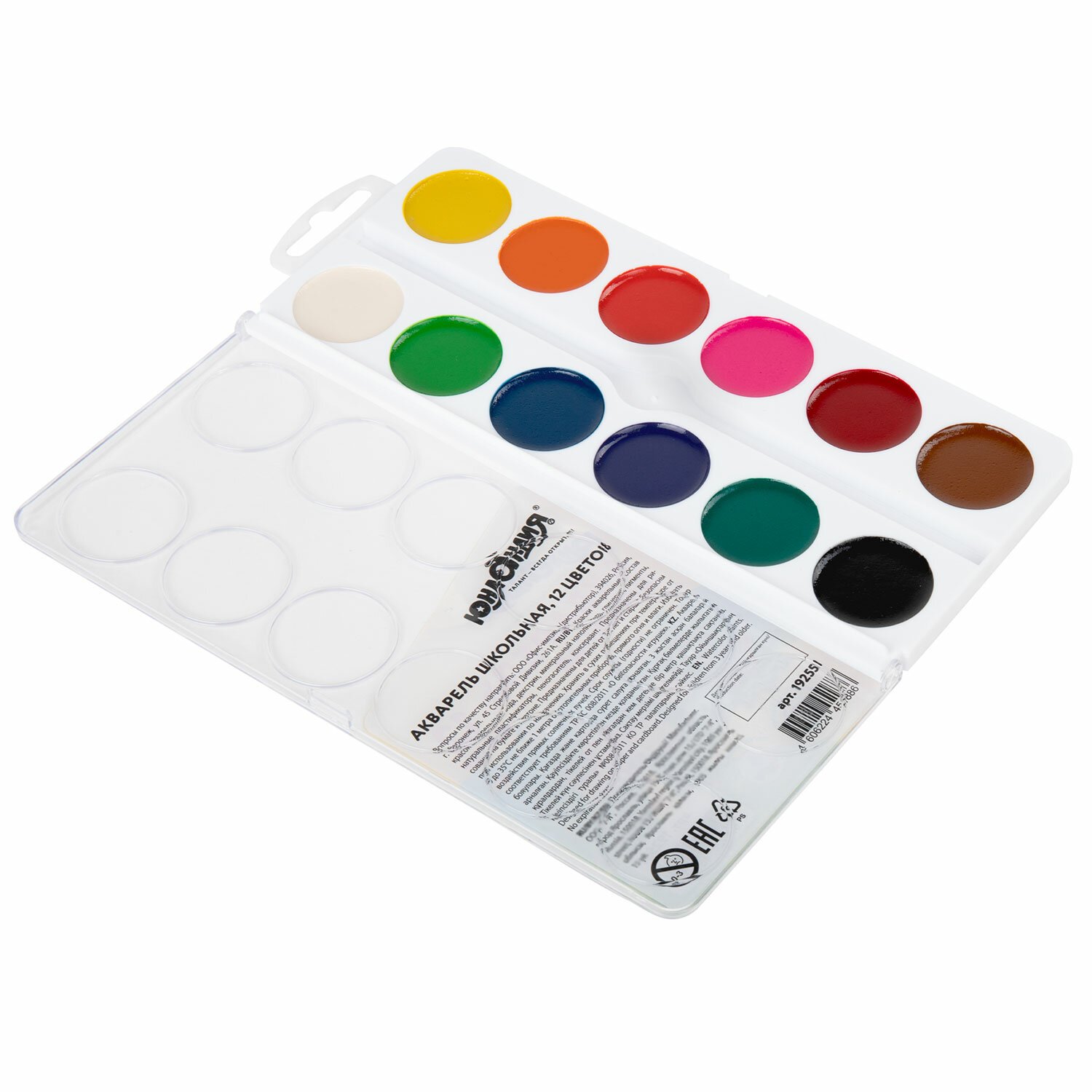 Краски акварельные ЮНЛАНДИЯ "ШКОЛЬНЫЕ" 12 цветов, медовые, круглые кюветы, 192551