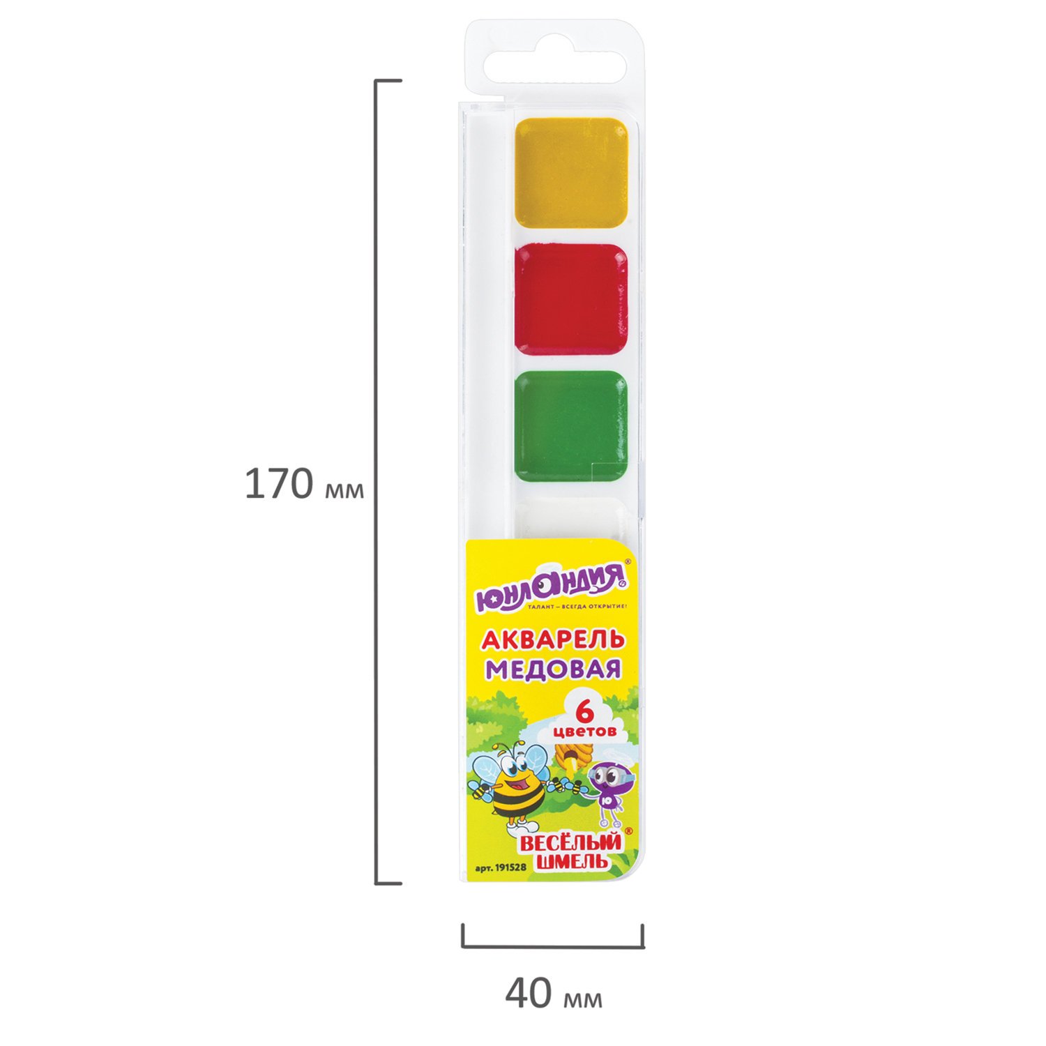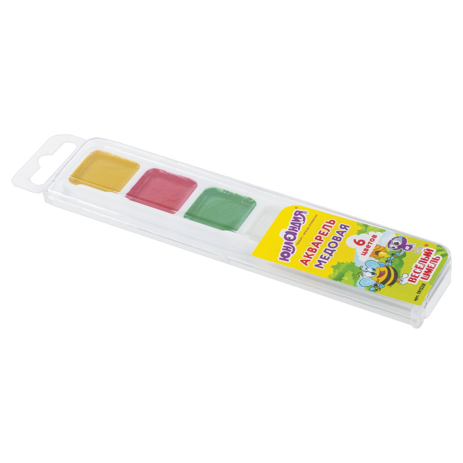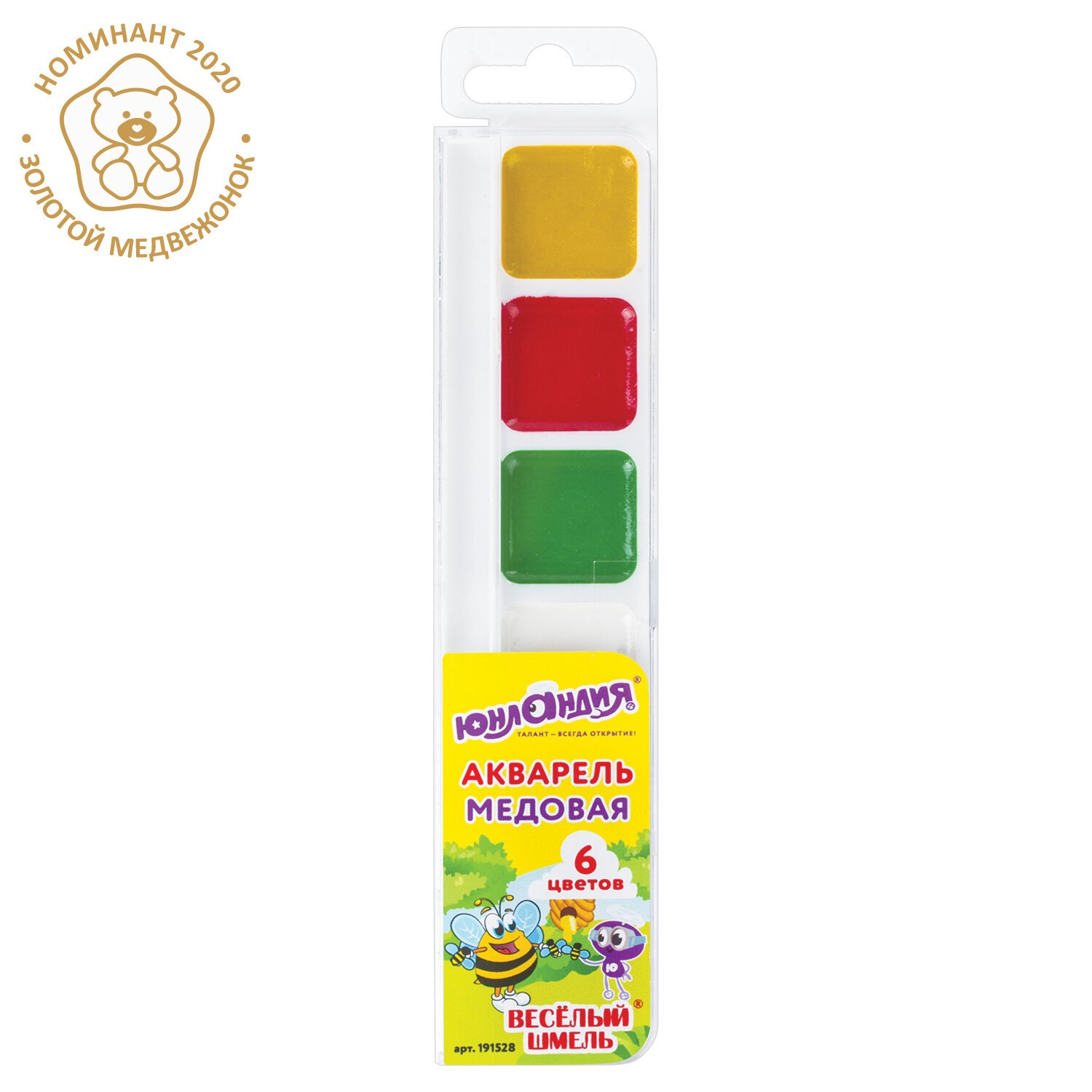 Краски акварельные ЮНЛАНДИЯ "ВЕСЕЛЫЙ ШМЕЛЬ", медовые, 6 цветов, КЛАССИЧЕСКИЕ, пластик, 191528