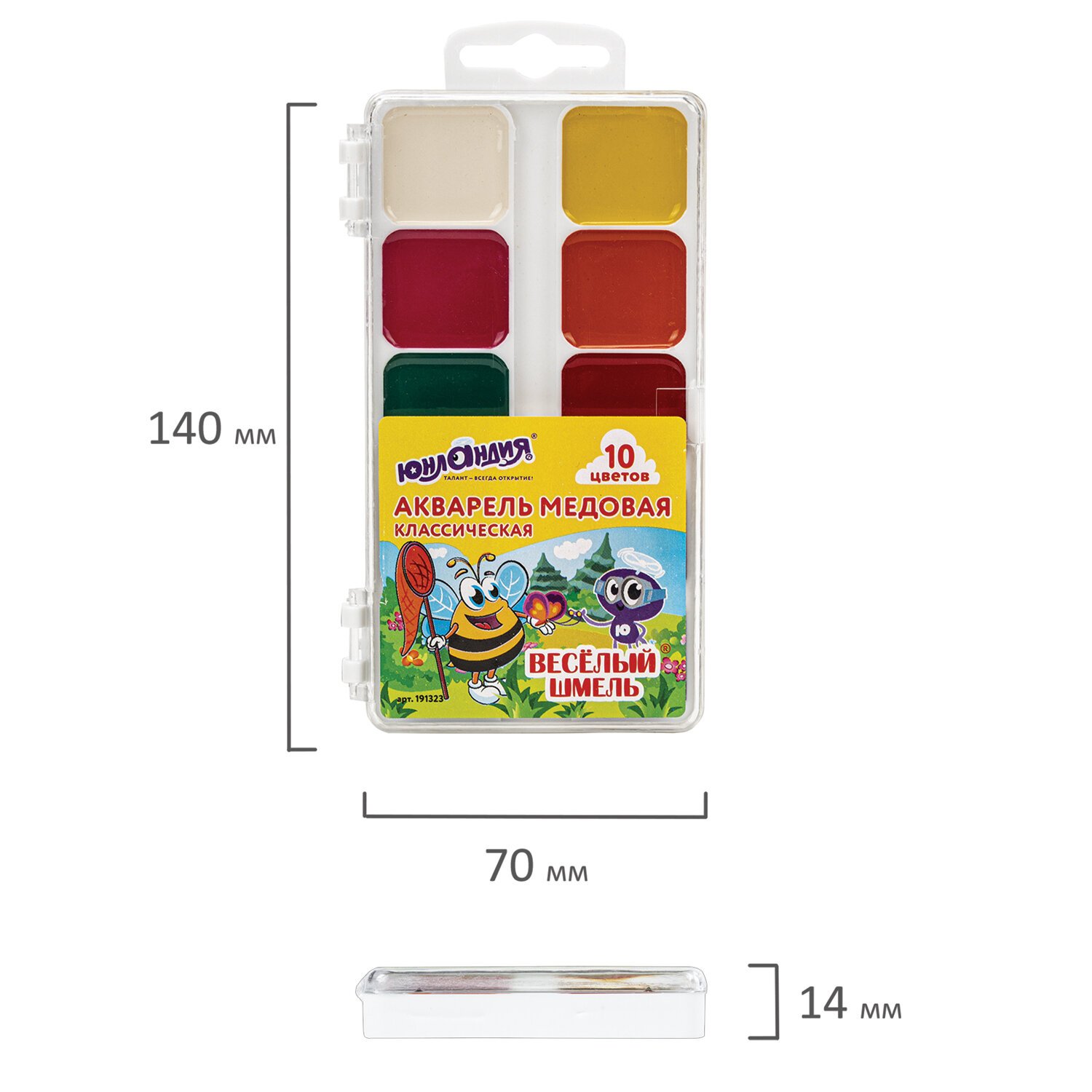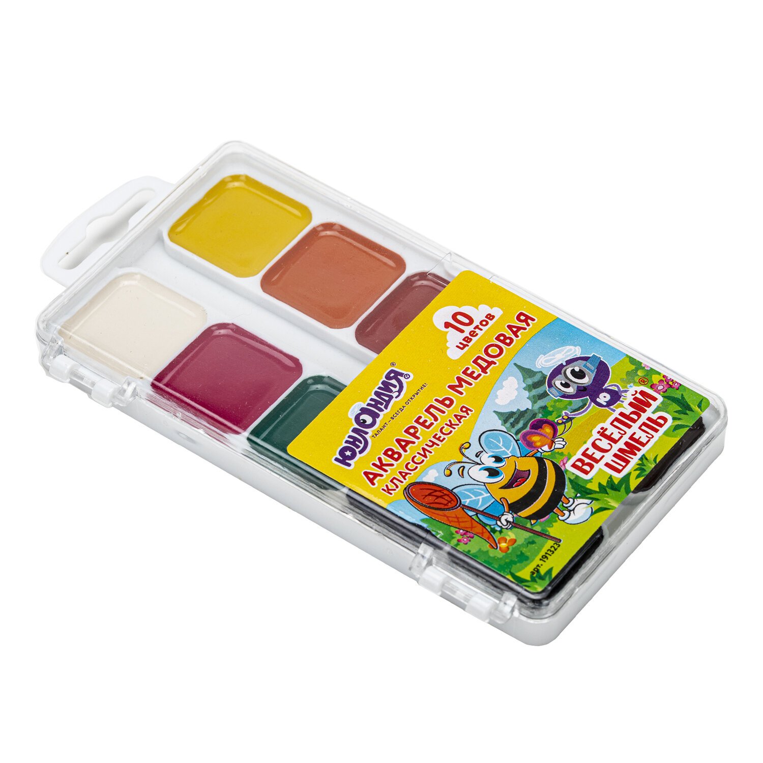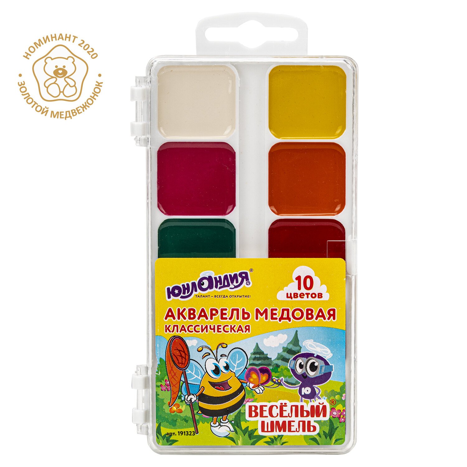 Краски акварельные ЮНЛАНДИЯ "ВЕСЁЛЫЙ ШМЕЛЬ", медовые, 10 цветов, КЛАССИЧЕСКИЕ, пластик, 191323