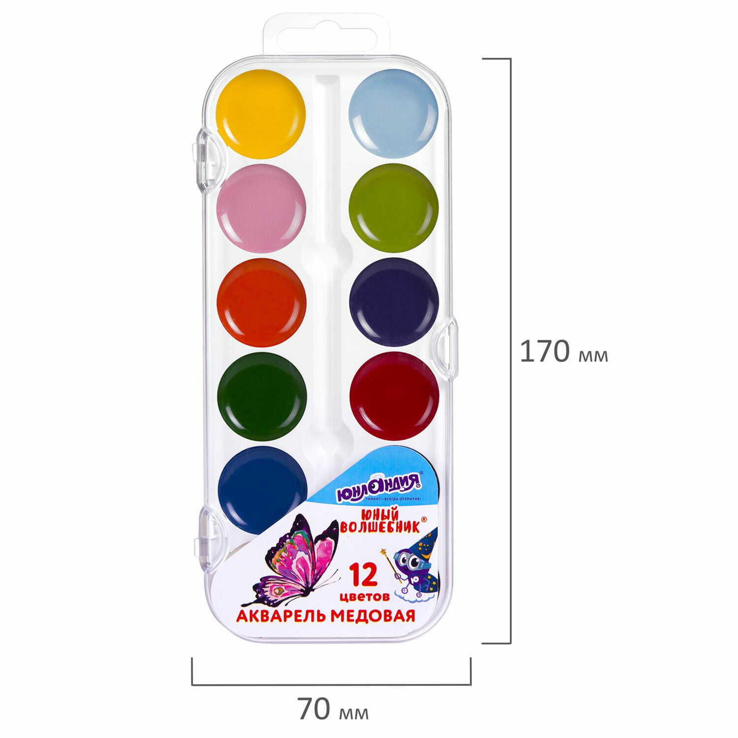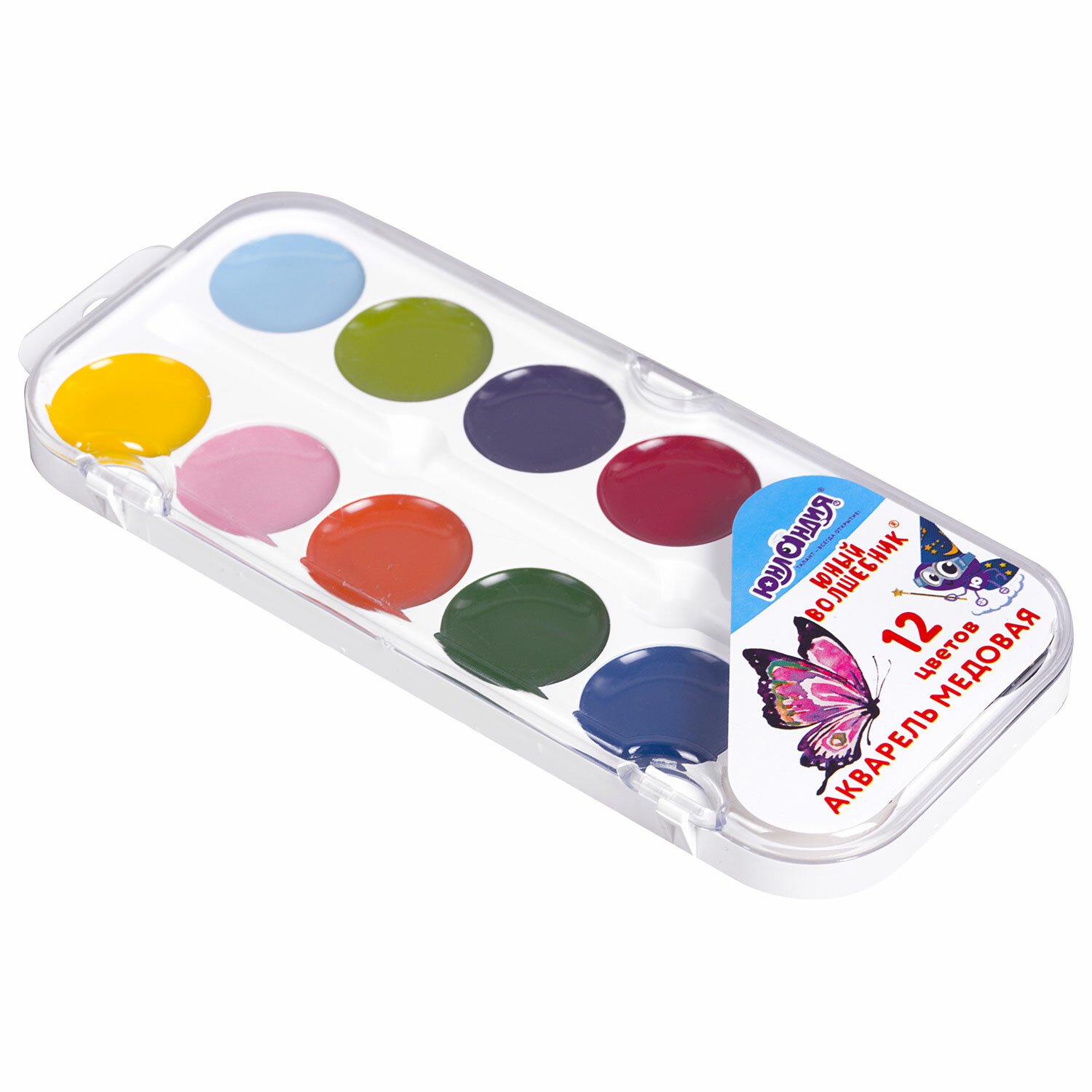 Краски акварельные ЮНЛАНДИЯ "ЮНЫЙ ВОЛШЕБНИК", медовые, 12 цветов, круглые кюветы, пластик, 192358
