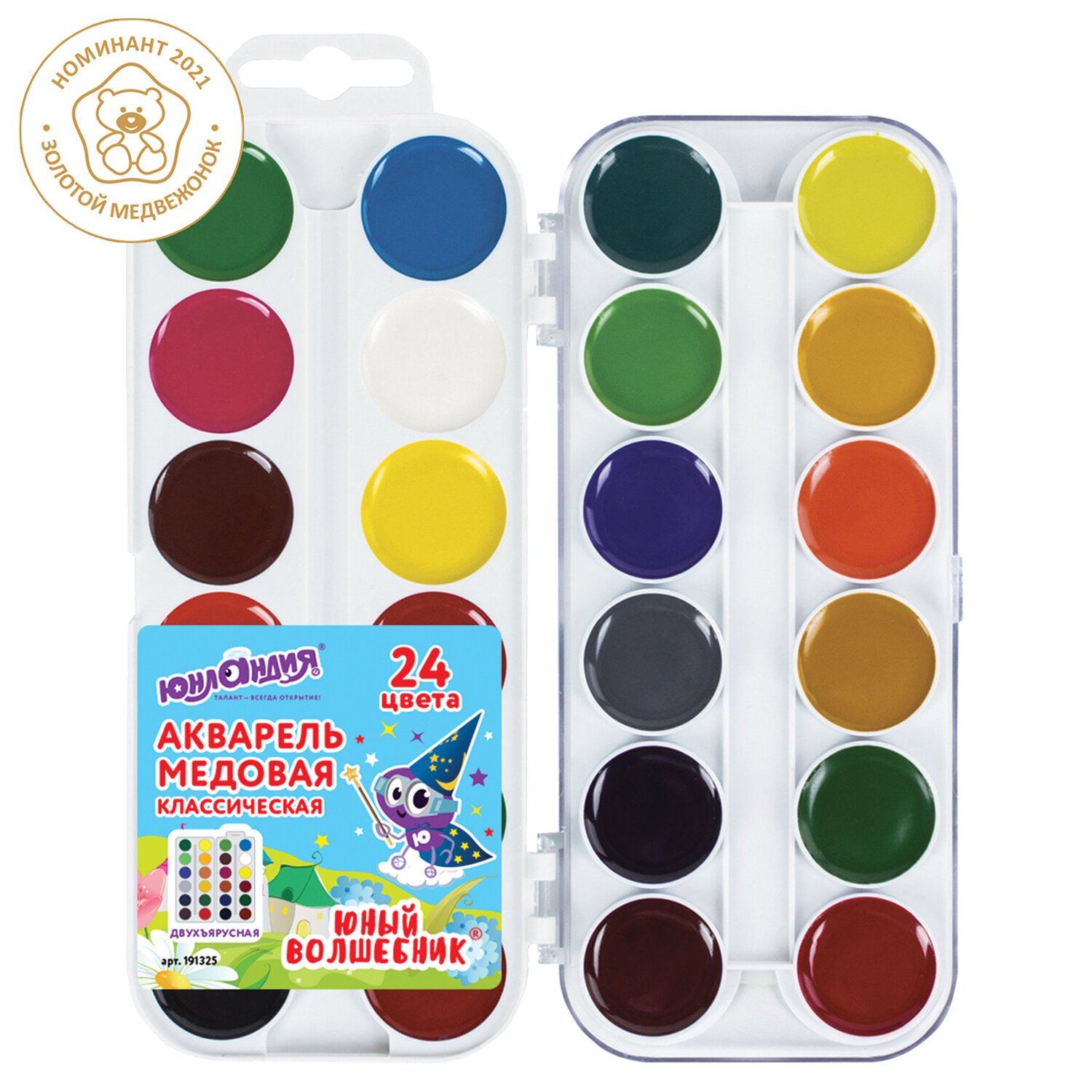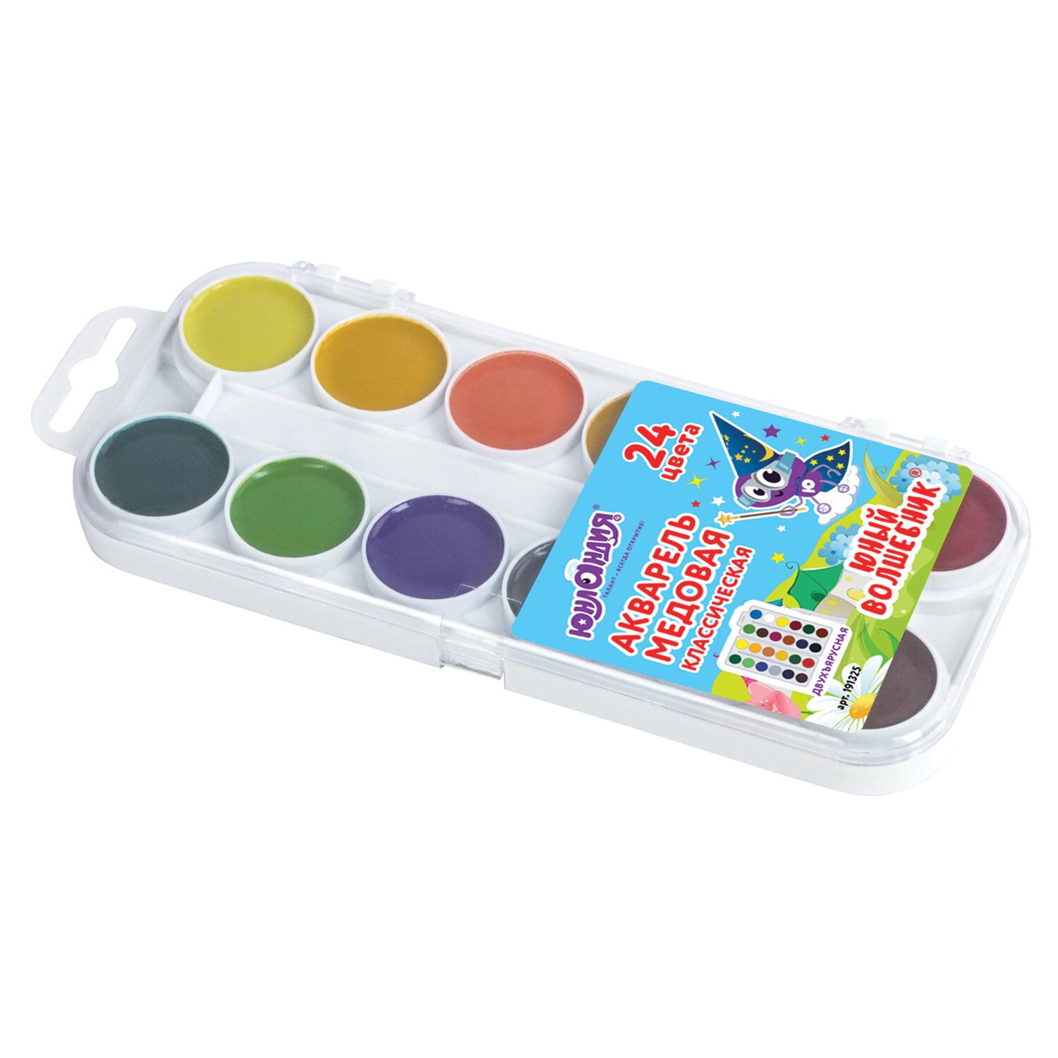 Краски акварельные ЮНЛАНДИЯ "ЮНЫЙ ВОЛШЕБНИК", медовые, 24 цвета, КЛАССИЧЕСКИЕ, пластик, 191325
