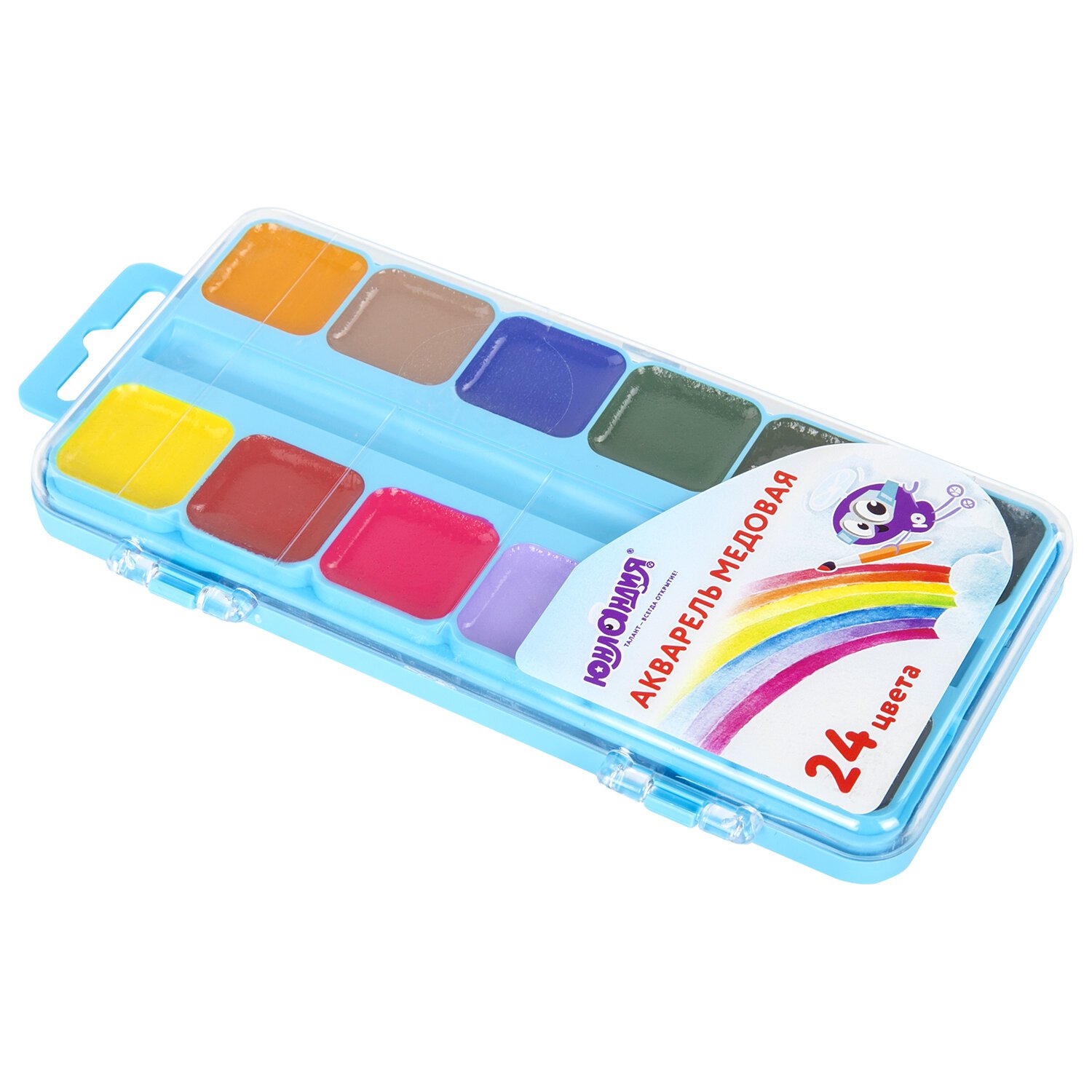 Краски акварельные ЮНЛАНДИЯ "ВЕСЁЛЫЙ ШМЕЛЬ", медовые, 24 цвета, квадратные кюветы, пластик, 192363