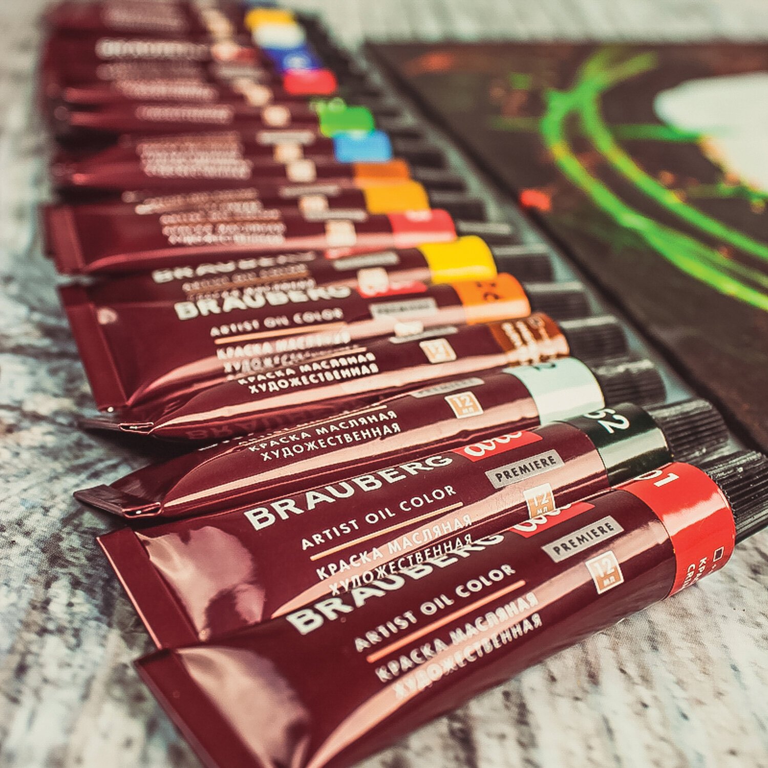 Краски масляные художественные BRAUBERG ART PREMIERE, 24 цв. по 12 мл, в тубах, 191457