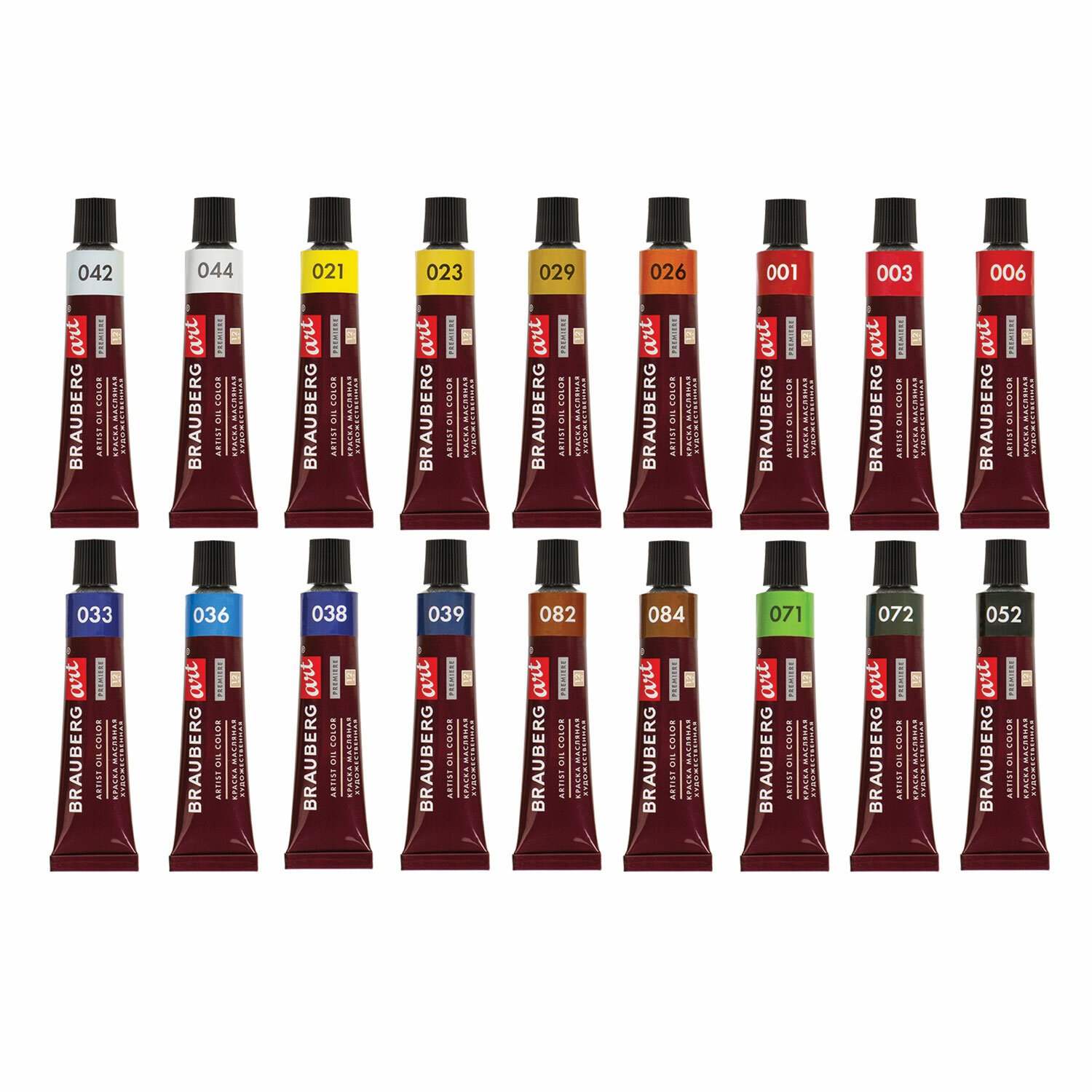Краски масляные художественные BRAUBERG ART PREMIERE, 18 цв. по 22 мл, в тубах, 191459