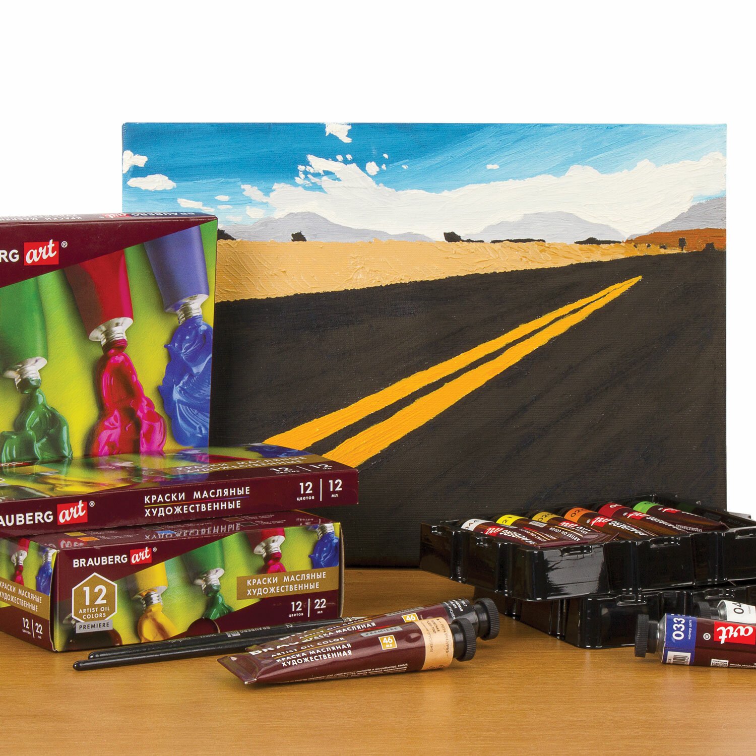 Краски масляные художественные BRAUBERG ART PREMIERE, 12 цв. по 12 мл, в тубах, 191455