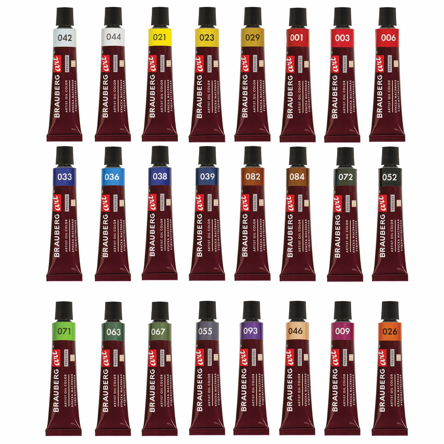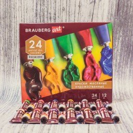 Краски масляные художественные BRAUBERG ART PREMIERE, 24 цв. по 12 мл, в тубах, 191457