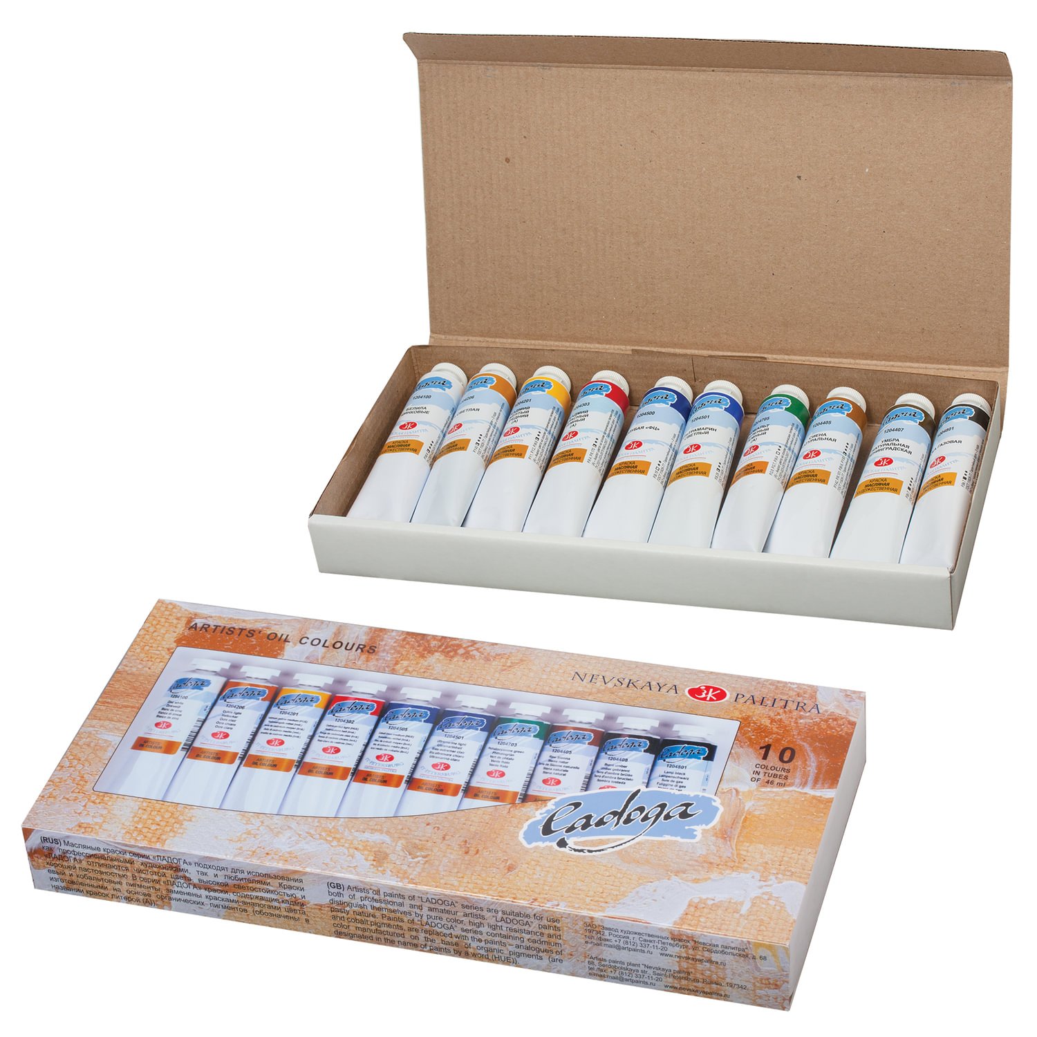 Краски масляные художественные "Ладога", НАБОР 10 цветов по 46 мл, в тубах, 1241006
