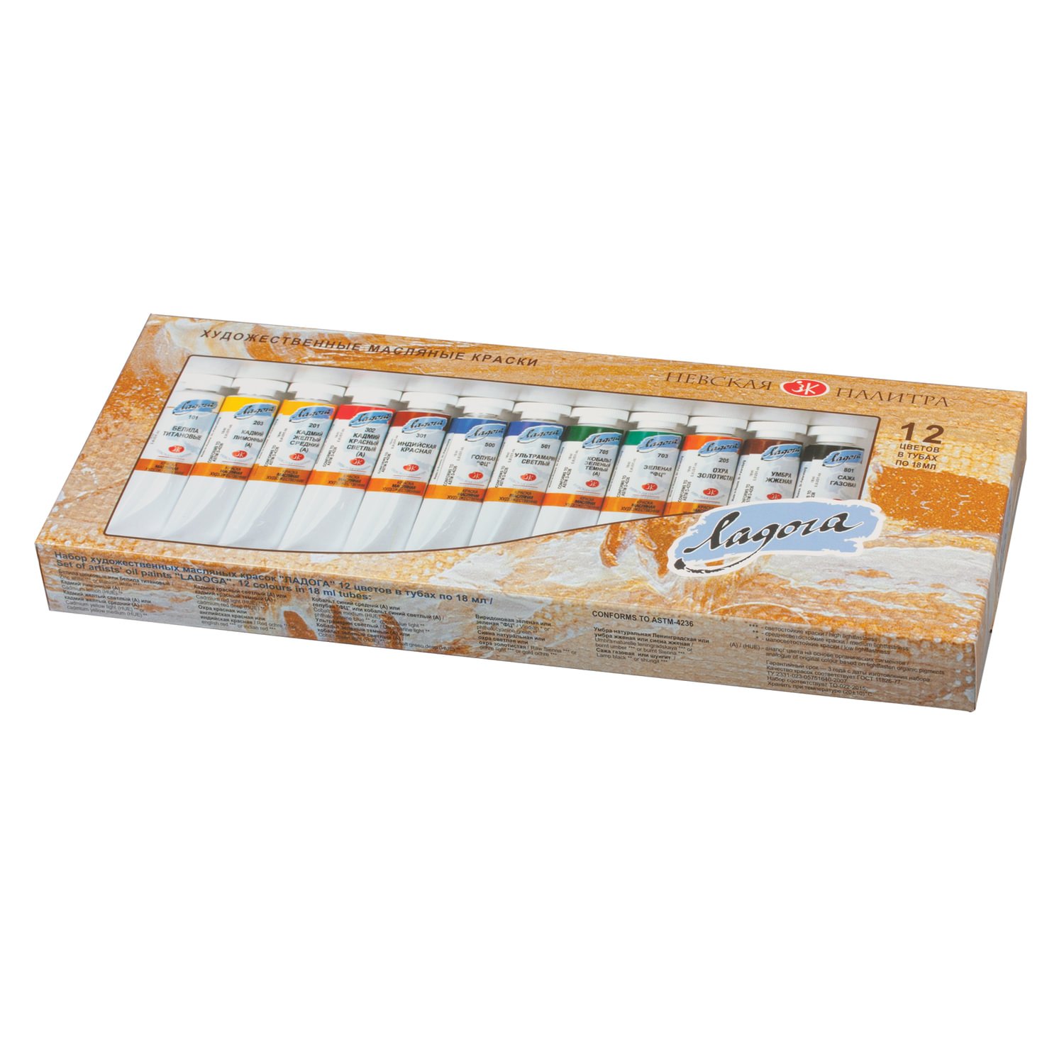 Краски масляные художественные "Ладога", НАБОР 12 цветов по 18 мл, в тубах, 1241004