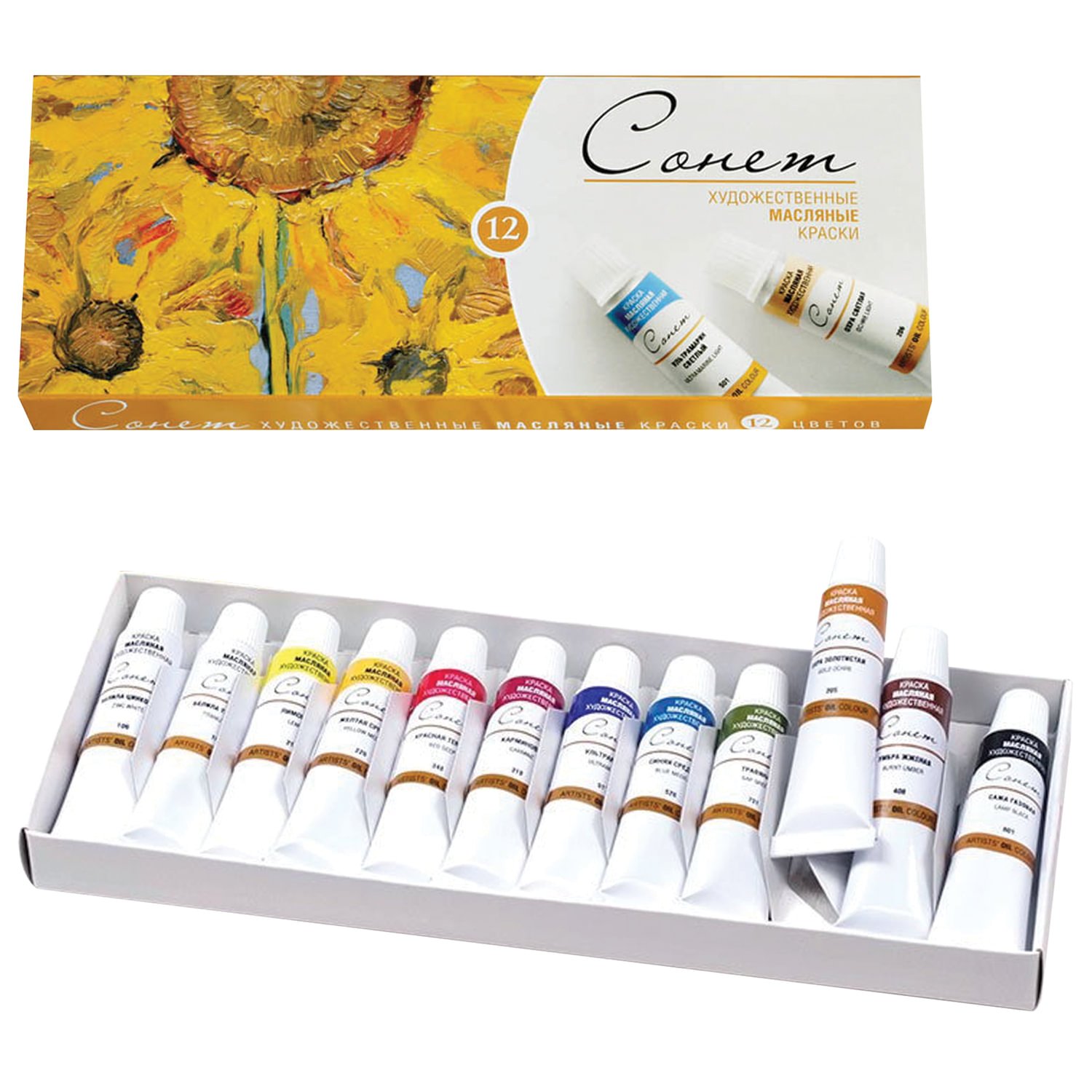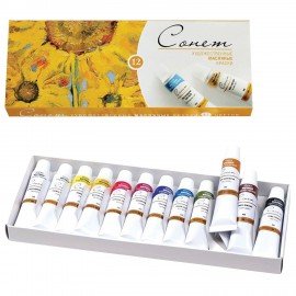 Краски масляные художественные "Сонет", НАБОР 12 цветов по 10 мл, в тубах, 2641099