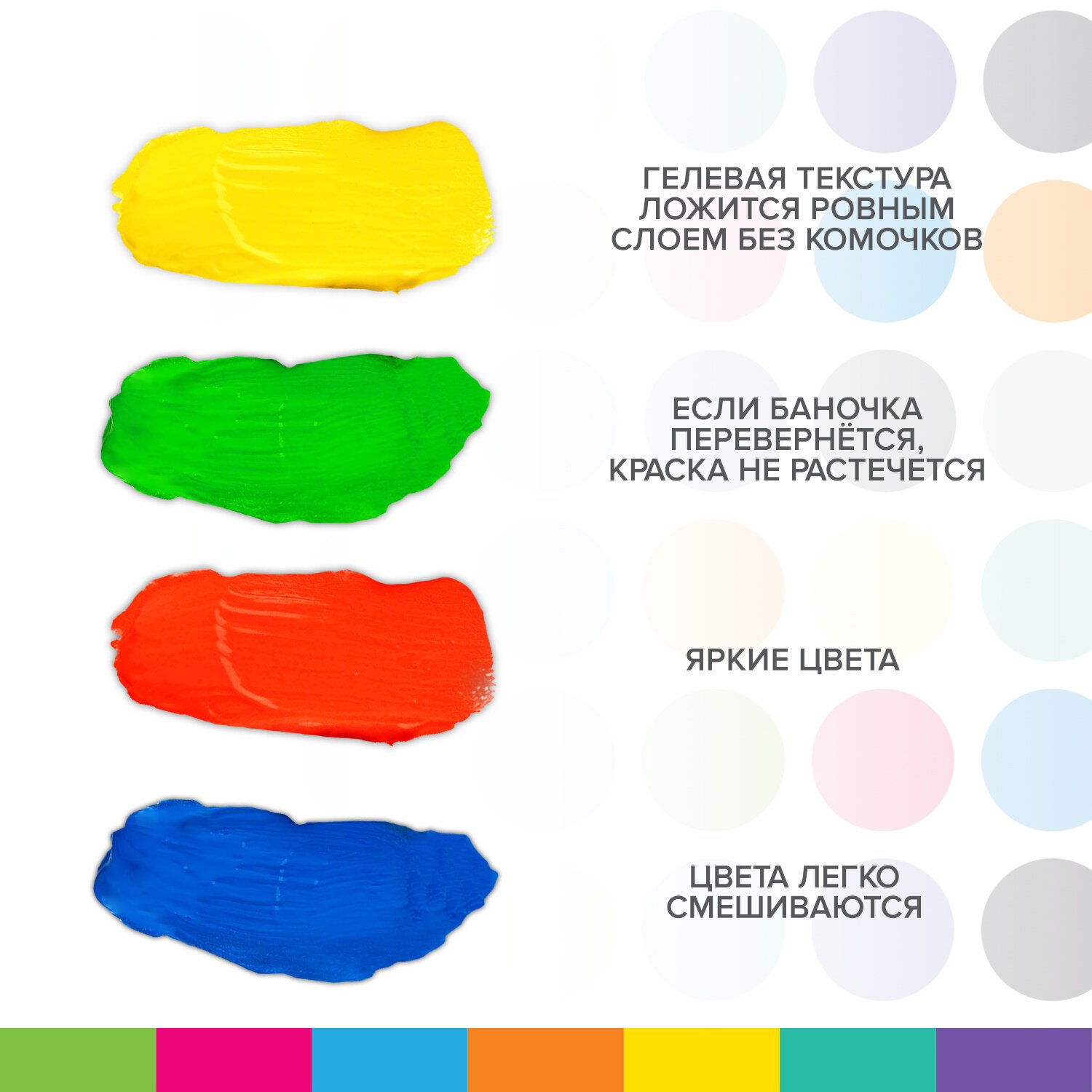 Краски пальчиковые для малышей от 1 года, 6 цветов (3 пастельных + 3 флуоресцентных) по 40 мл, BRAUBERG KIDS, 192400
