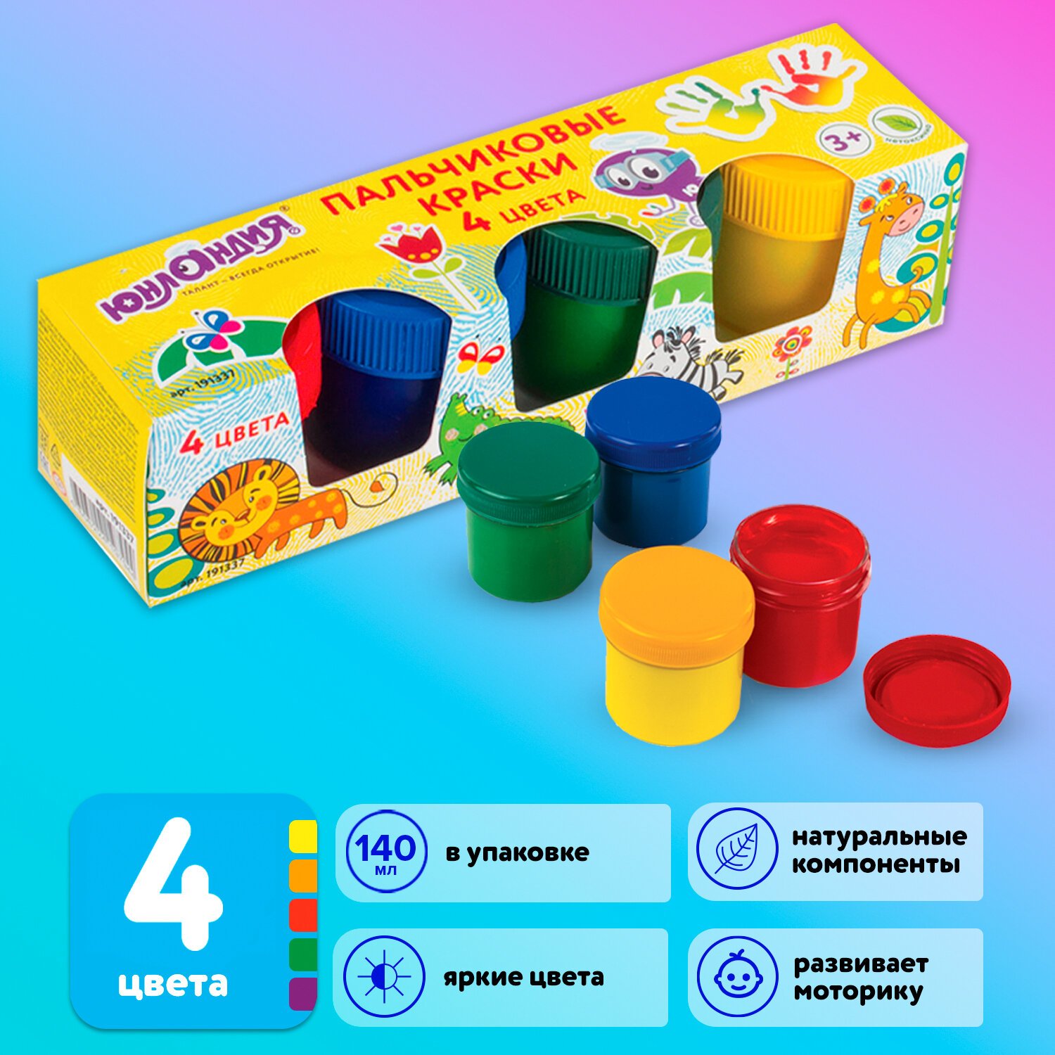 Краски пальчиковые для малышей от 1 года, классические цвета, 4 по 35 мл, ЮНЛАНДИЯ, 192568