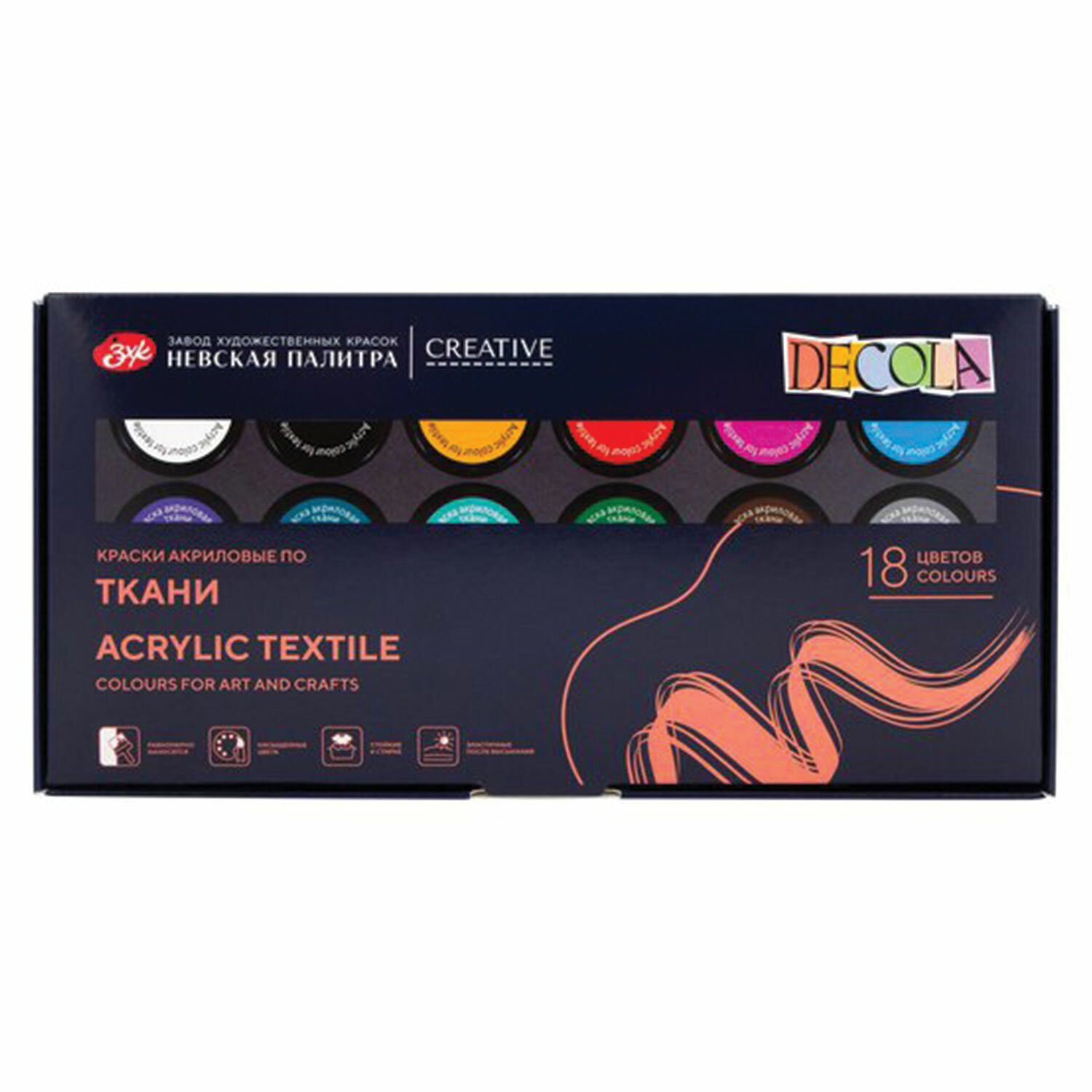 Краски по ткани акриловые "Декола", 18 цветов по 20 мл, в банках, 41412031