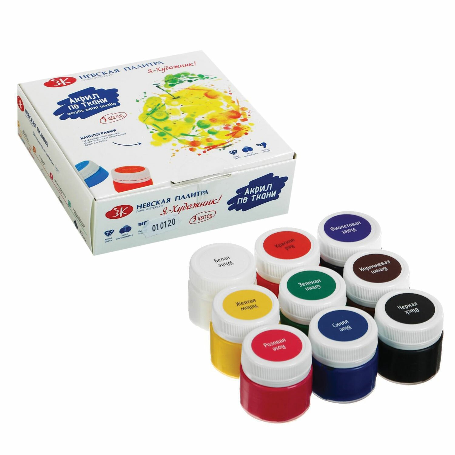 Краски по ткани акриловые "Я - Художник!", 9 цветов по 15 мл, в банках, 228411541
