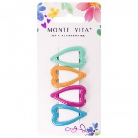 Заколки для волос НАБОР 4 шт, 3,5 см, клик-клак, сердечки, глянцевый, разные цвета MONTE VITA 457082