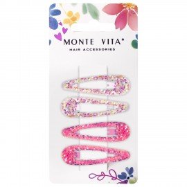Заколки для волос НАБОР 4 шт, 5 см, клик-клак, с блестками, разные цвета MONTE VITA 457091