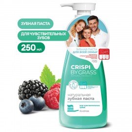 Зубная паста 250 мл, CRISPI by GRASS, "Для чувствительных зубов", без фтора, дозатор, 125723