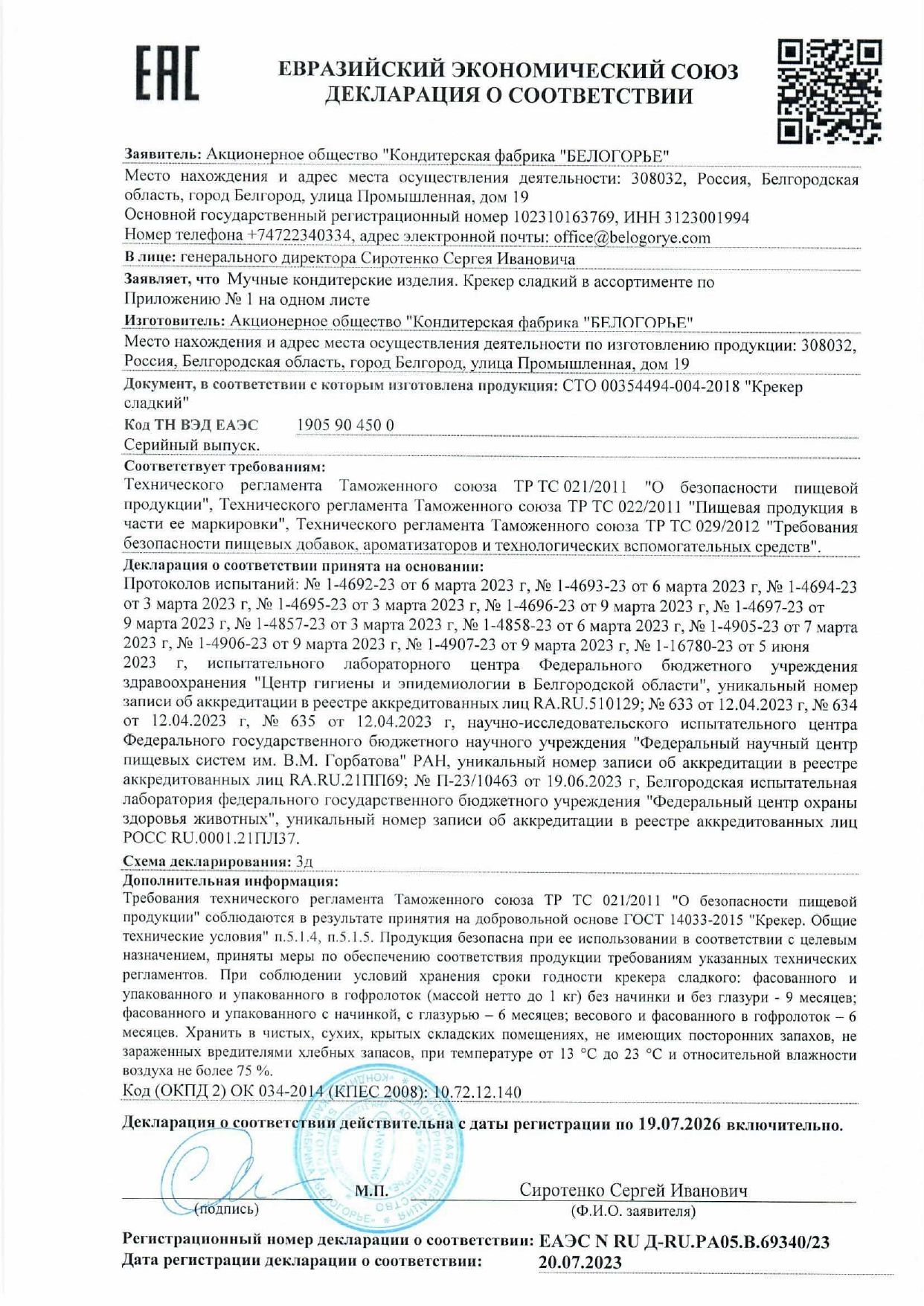 | Фирма-производитель | ООО «Торговый дом «БЕЛОГОРЬЕ» |