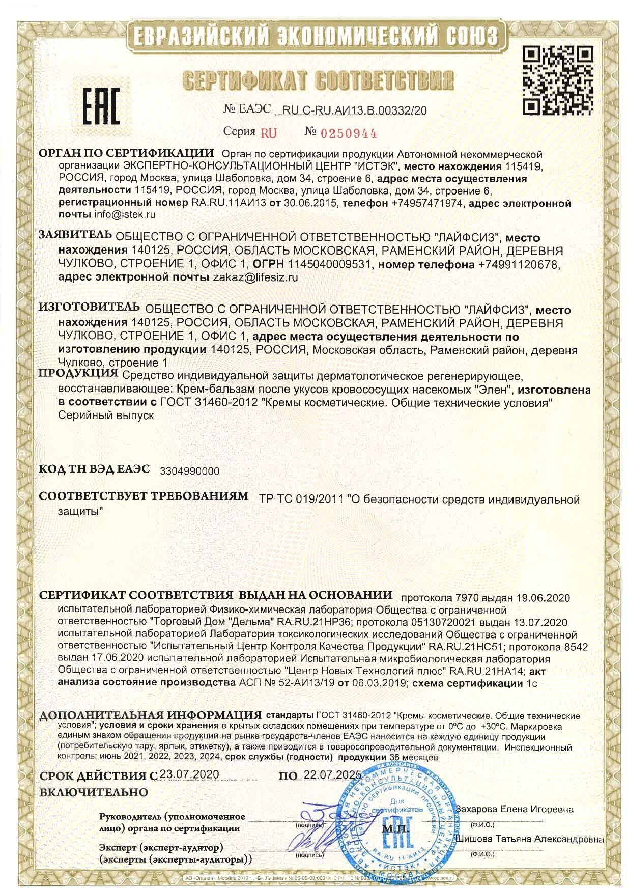 Крем-бальзам для кожи защитный 100 мл, ЭЛЕН, после укусов комаров и кровососущих насекомых