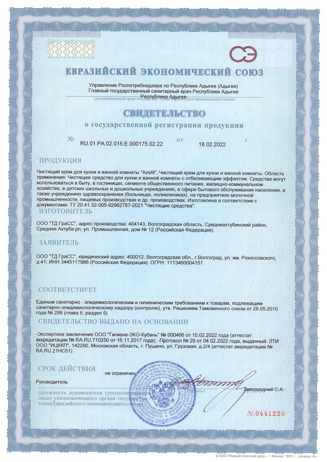 Крем чистящий универсальный для ванной и кухни 500 мл, GRASS AZELIT, отбеливающий, 125759