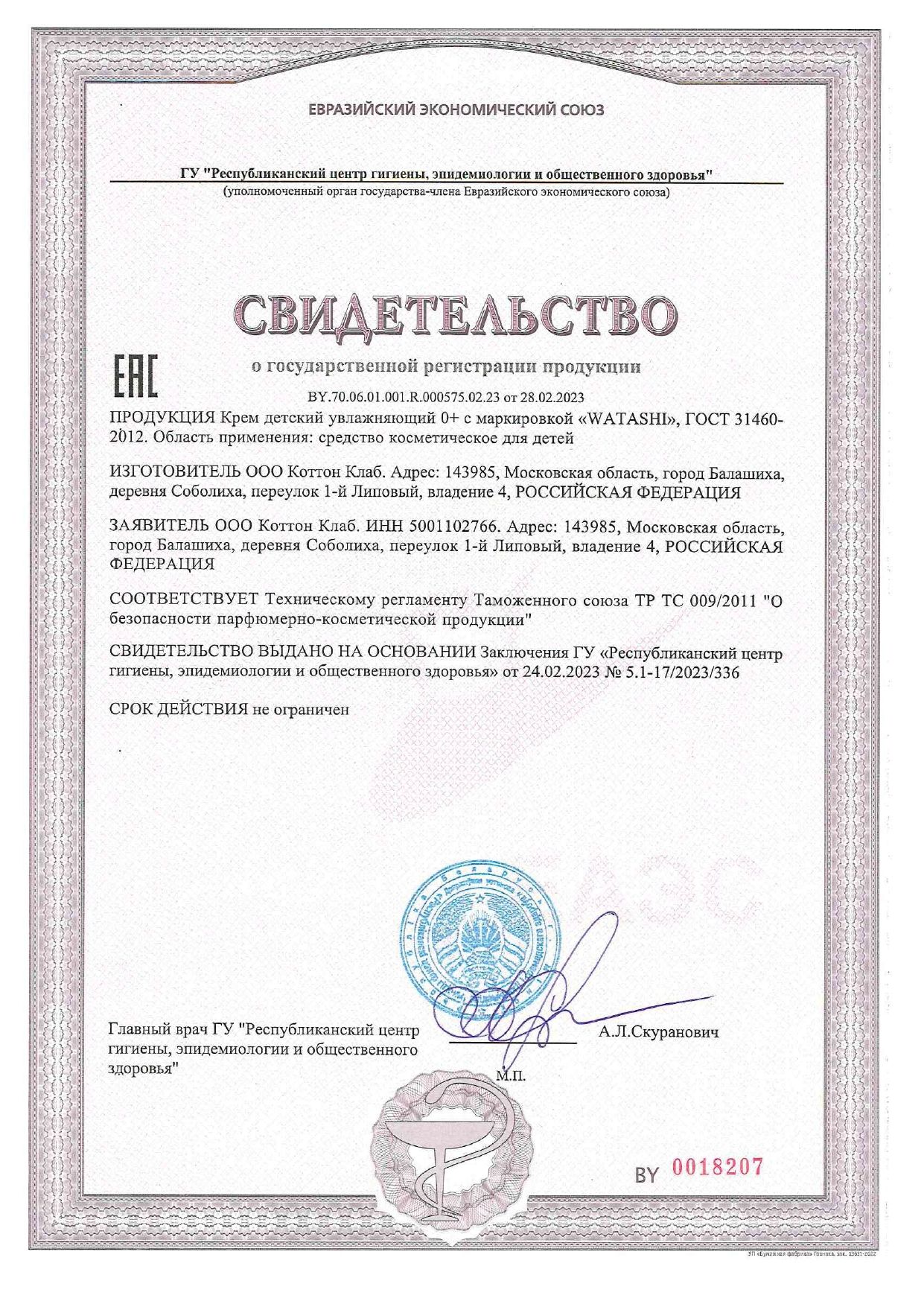 Гипоаллергенный детский крем WATASHI "Экстракт хлопка" с Д-пантенолом обеспечивает бережный уход за нежной кожей малыша в течение дня.