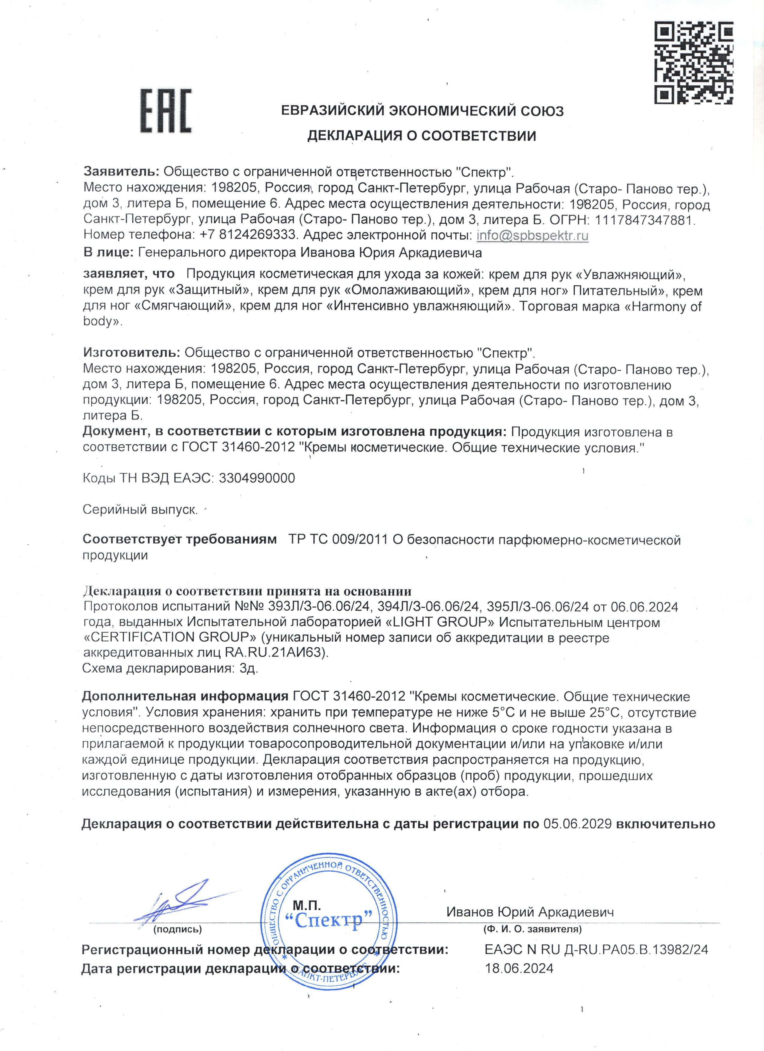 Крем для рук 75 мл, HARMONY OF BODY (Хармони оф боди), увлажняющий, КР-1