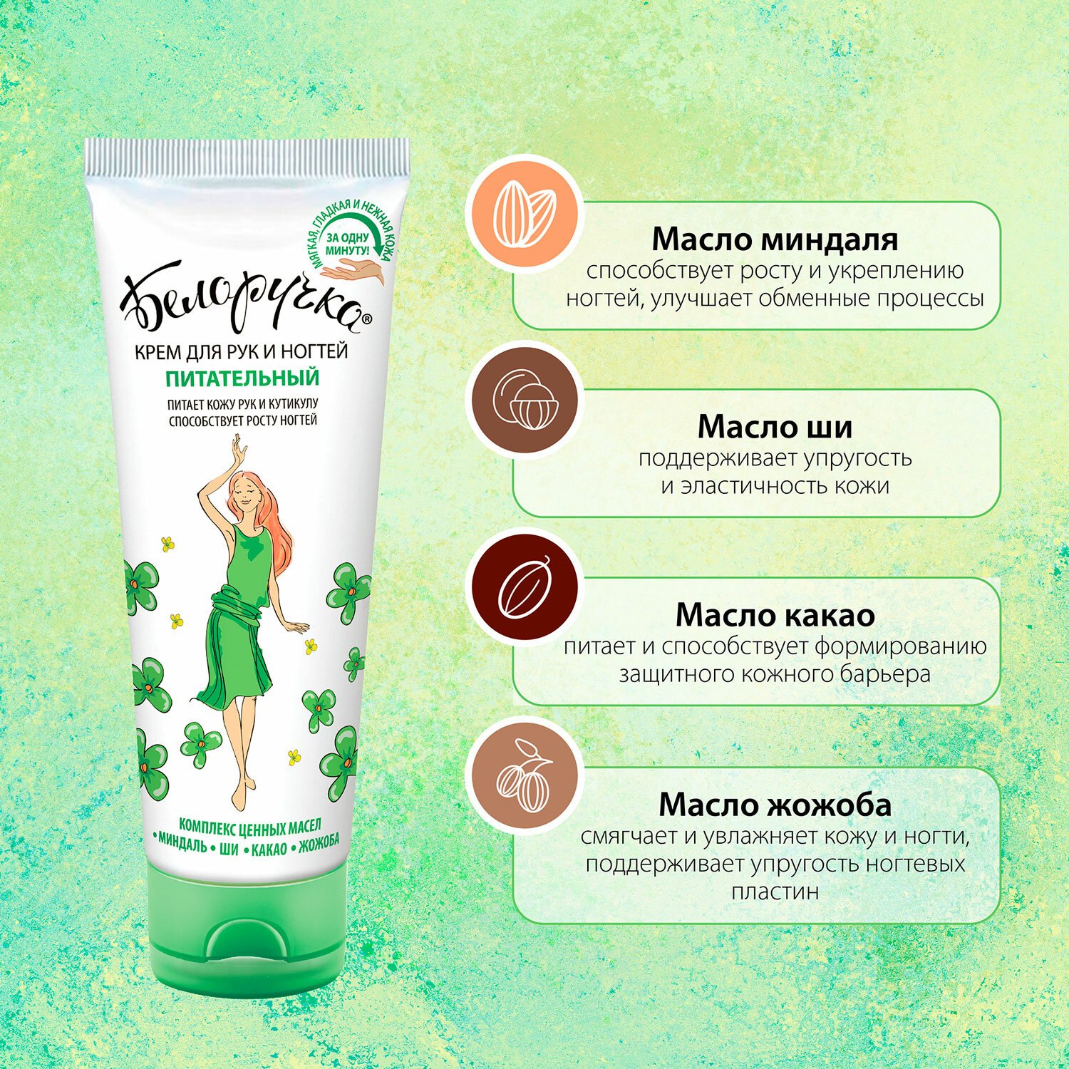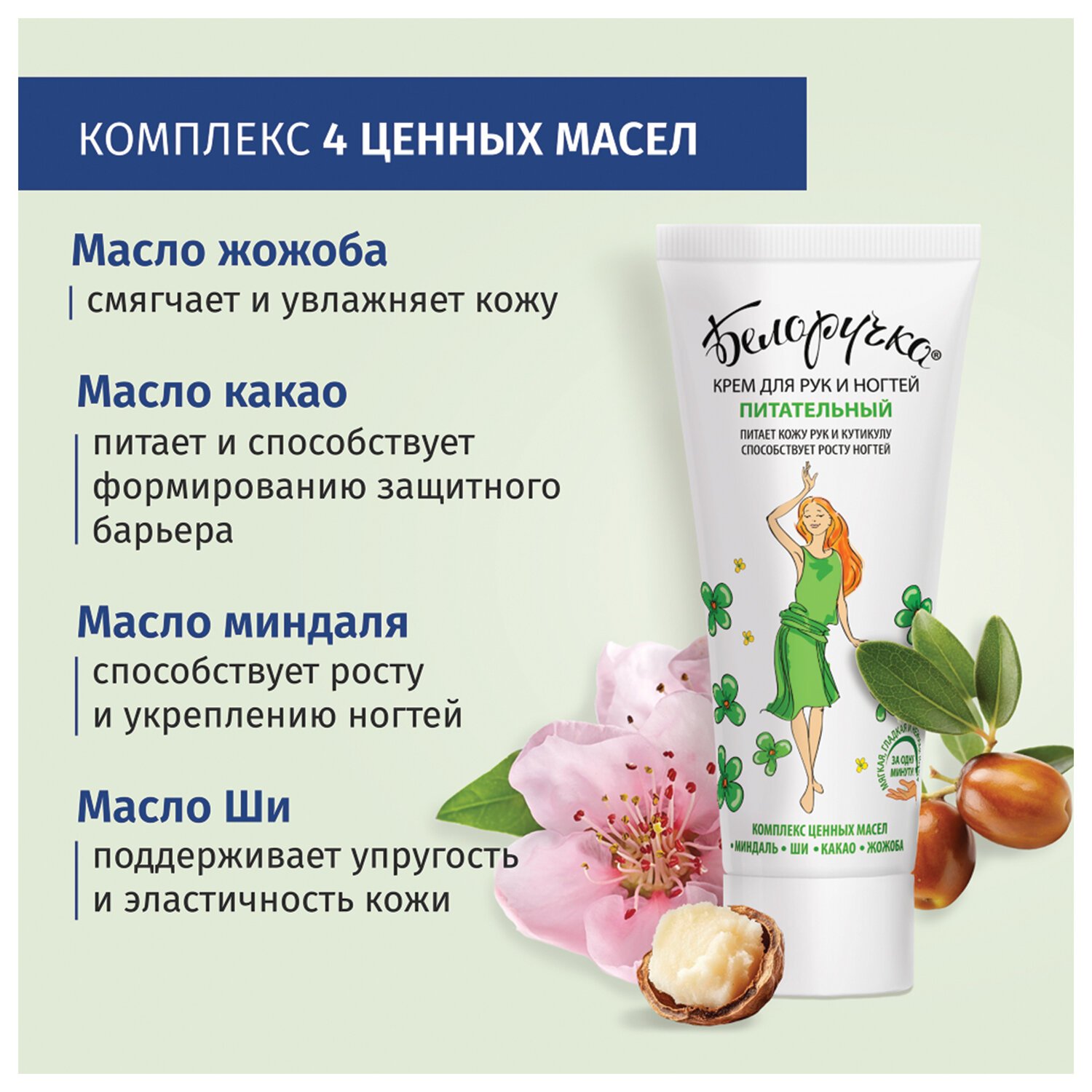 Крем для рук и ногтей БЕЛОРУЧКА "Питательный" – это полноценный ежедневный уход с комплексом из 4 ценных масел.